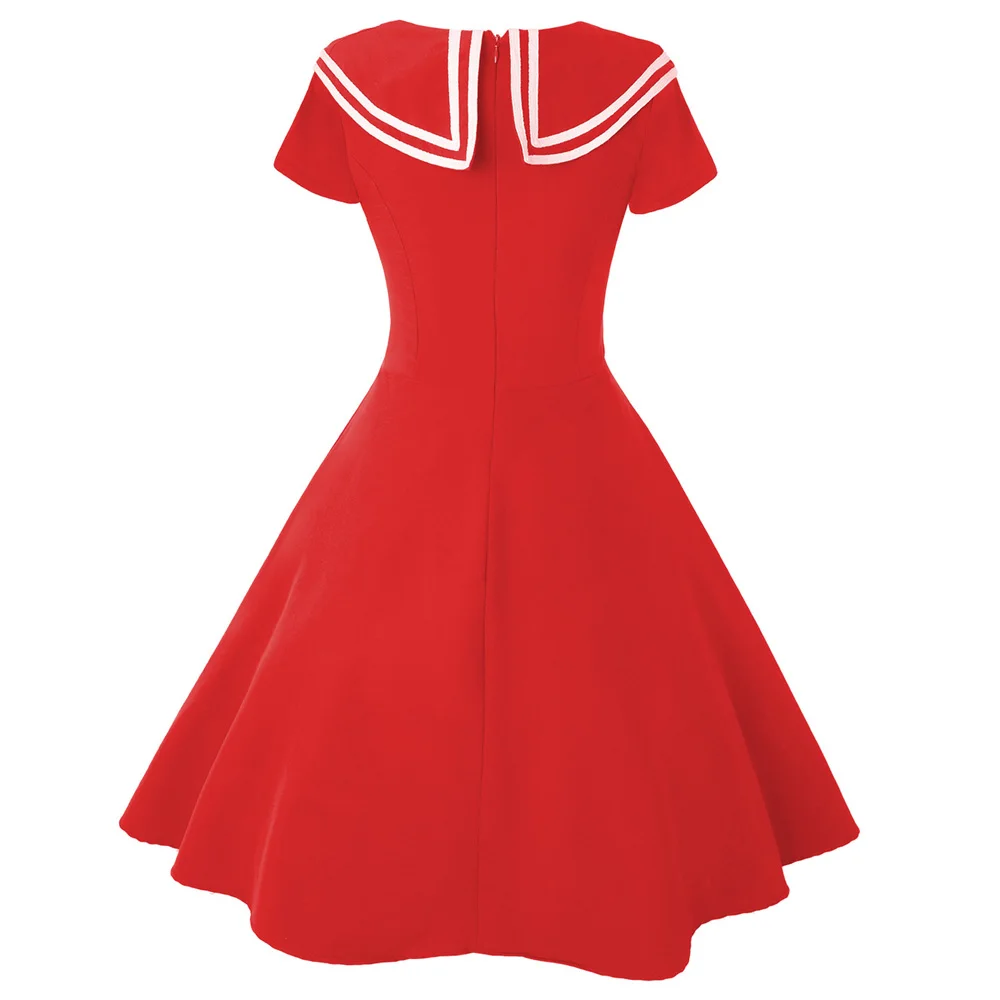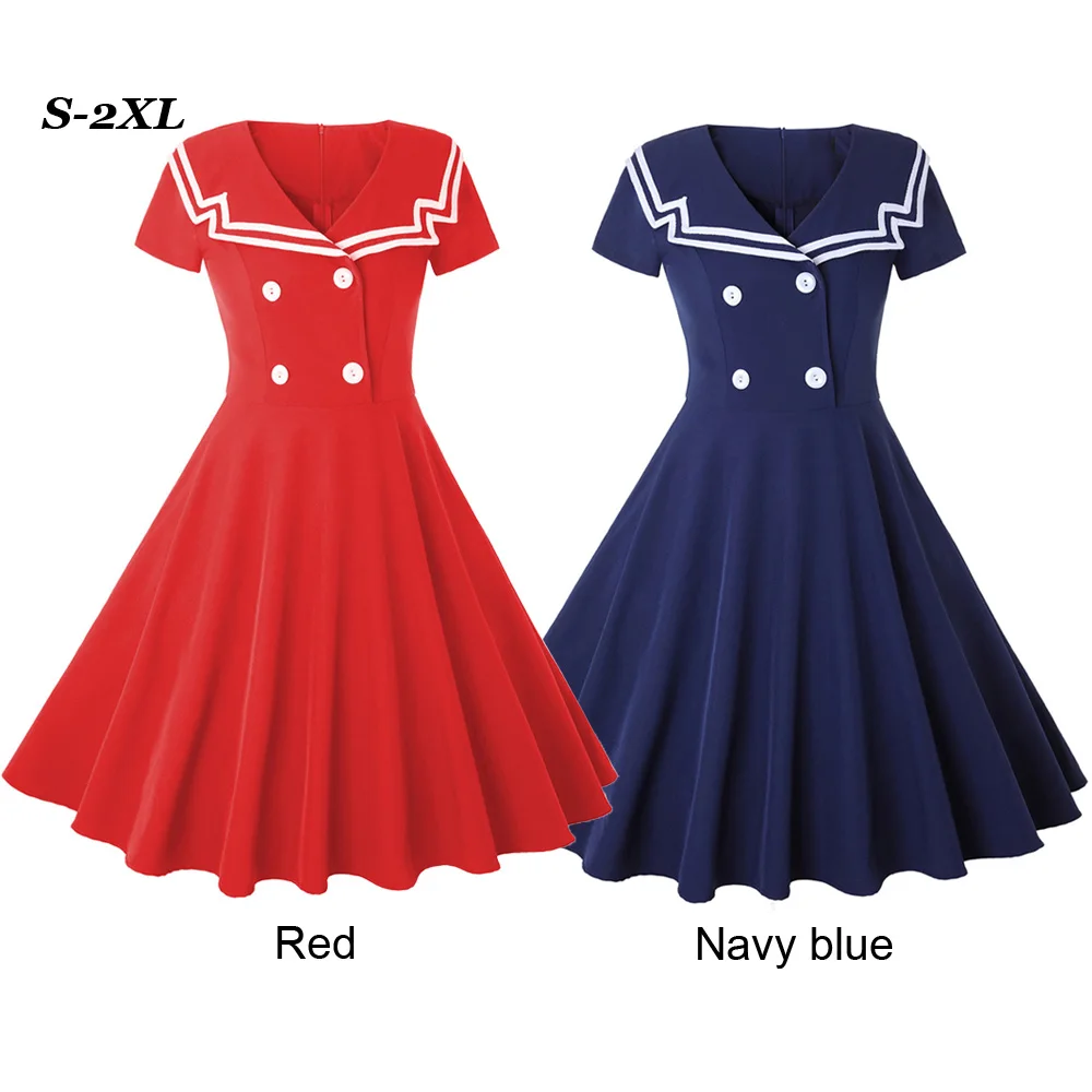 Wipalo Винтаж платье с v-образным вырезом с матросским воротником короткий рукав четыре кнопки A-Line вечерние платье Хепберн 50-х 60-х Повседневное платье vestidos