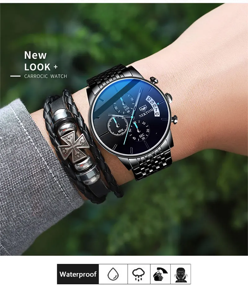 -3 АТМ/30 м водонепроницаемый (поддерживает душ в холодной воде и плавание, не работает с часами под водой, не поддерживает горячую воду);