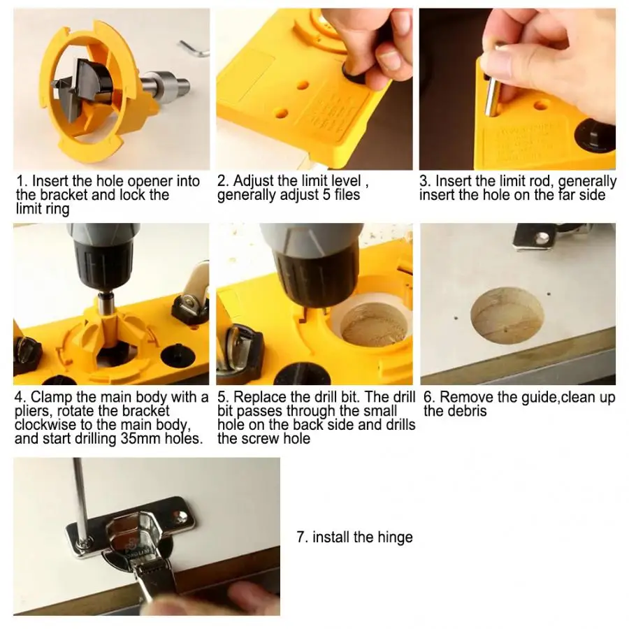 35 мм чашки стиль шарнир расточные джиг сверла руководство набор скрытых дверей отверстие шаблон для Kreg Столярный инструмент Деревообработка DIY Инструменты