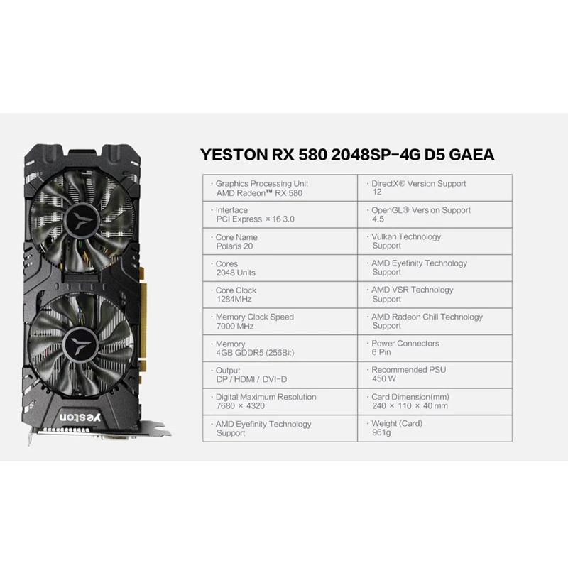 Карта изображения Yeston RX580 2048SP 4G D5 GAEA видеокарта Radeon Chill Polaris 20 двойной вентилятор