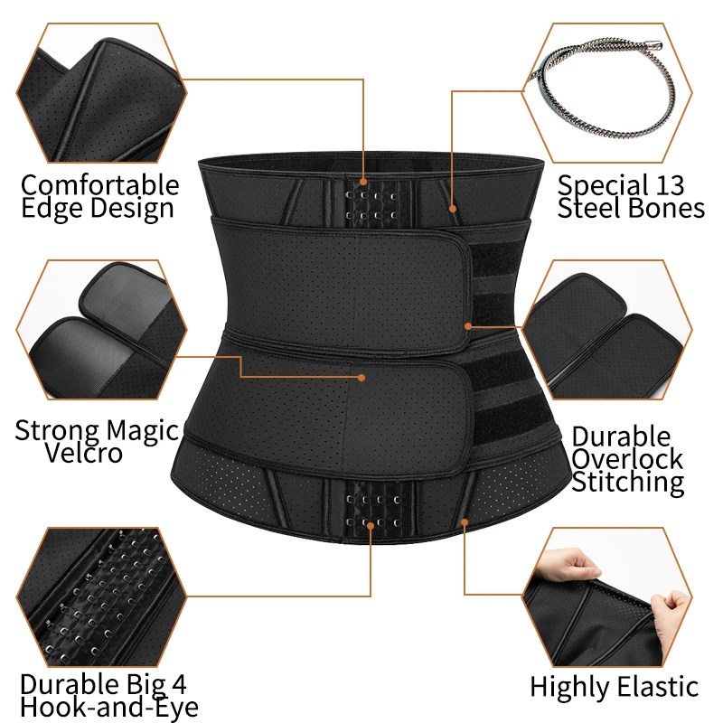 Встроенный 9 стальных костей, поддерживающий эффект формирования является мощным и эффективным. Отличный триммер для талии + тренажер для талии. Это дает вам совершенно другое ощущение по сравнению со старыми узкими.