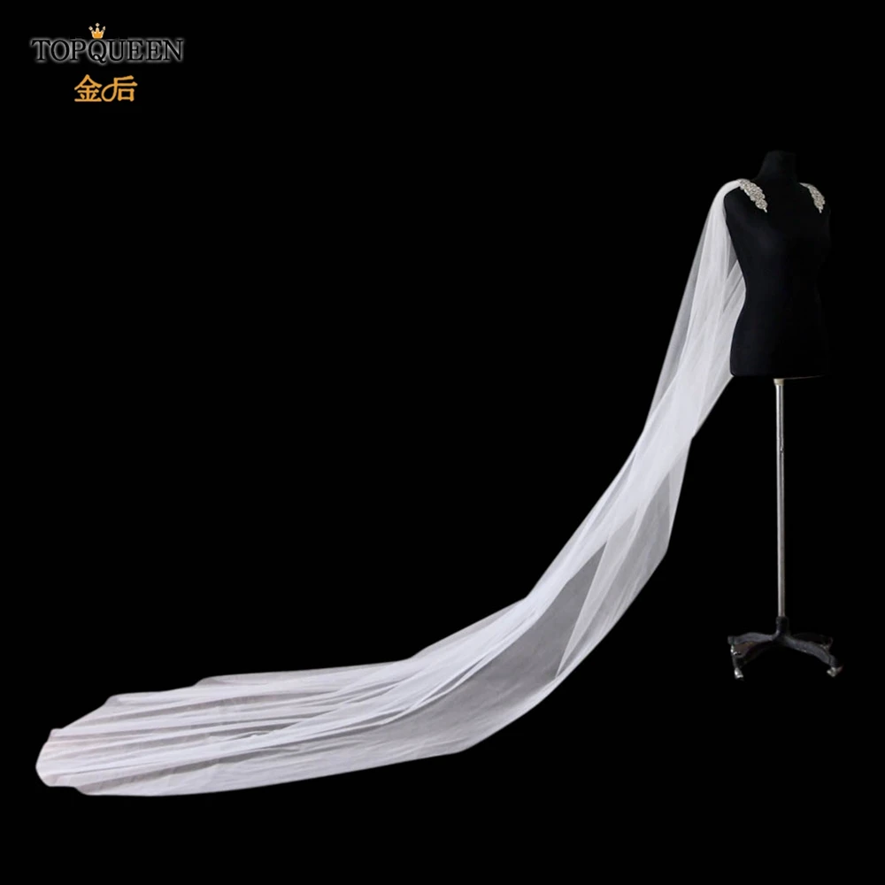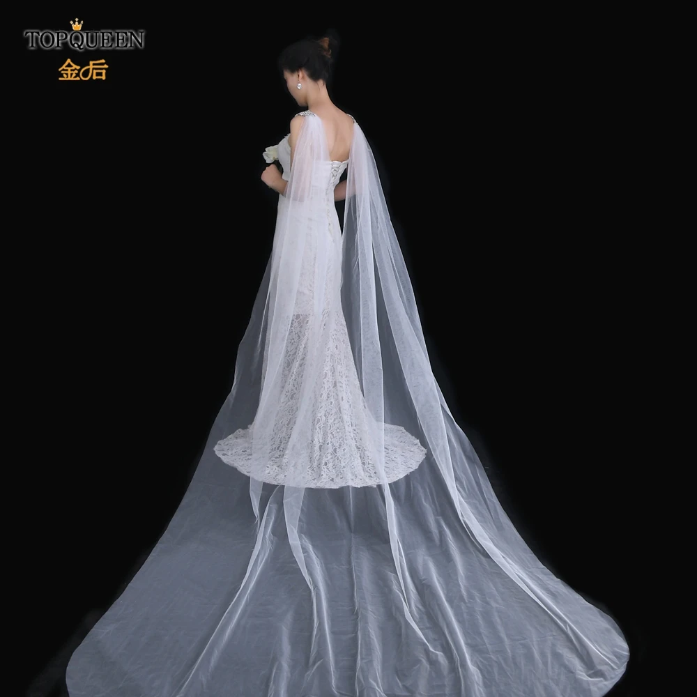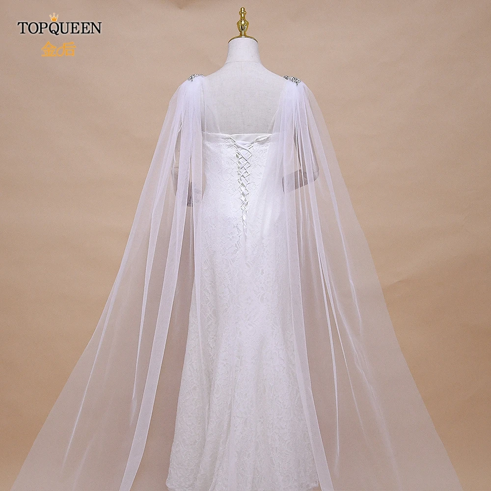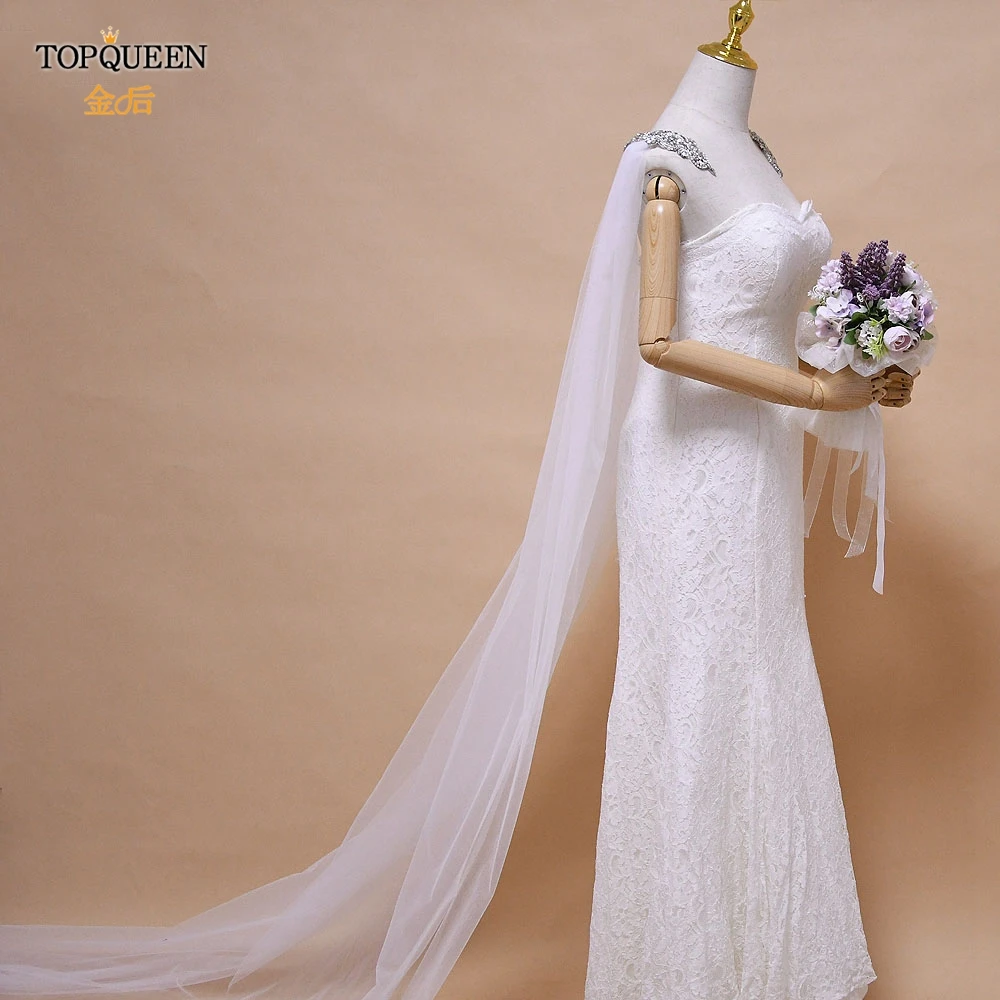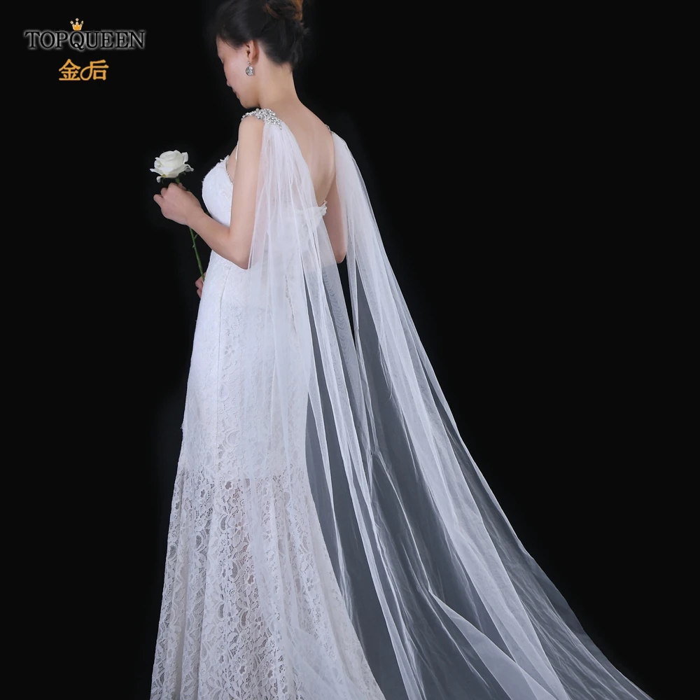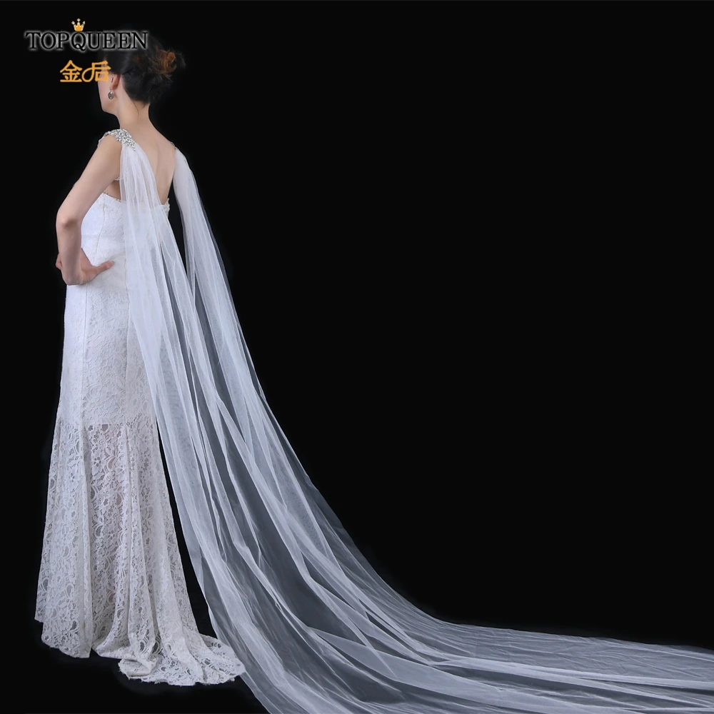 TOPQUEEN длинное платье со шлейфом для Платки женские длинные накидки для свадебной вечеринки 3 M горный хрусталь Шифоновые Свадебные шалей для официальных вечеров