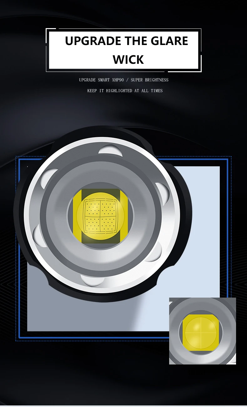 • Самый мощный светодиодный фонарик использует XLamp XHP90.2 светодиодный, XHP70.2 очень яркие Люмены, XHP50.2