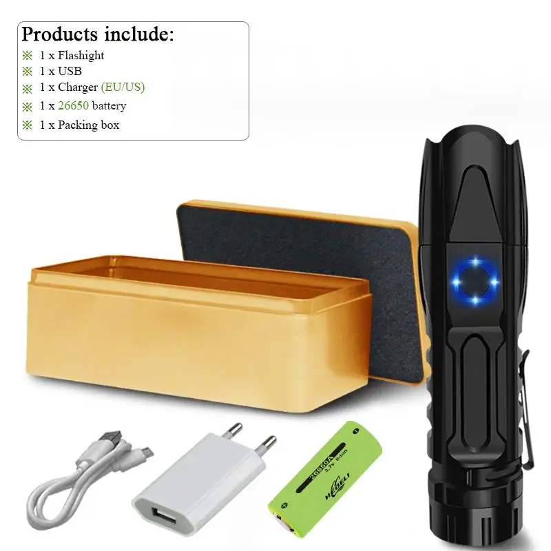 • Используйте перезаряжаемую батарею 1*18650 или 1*26650, различные варианты.