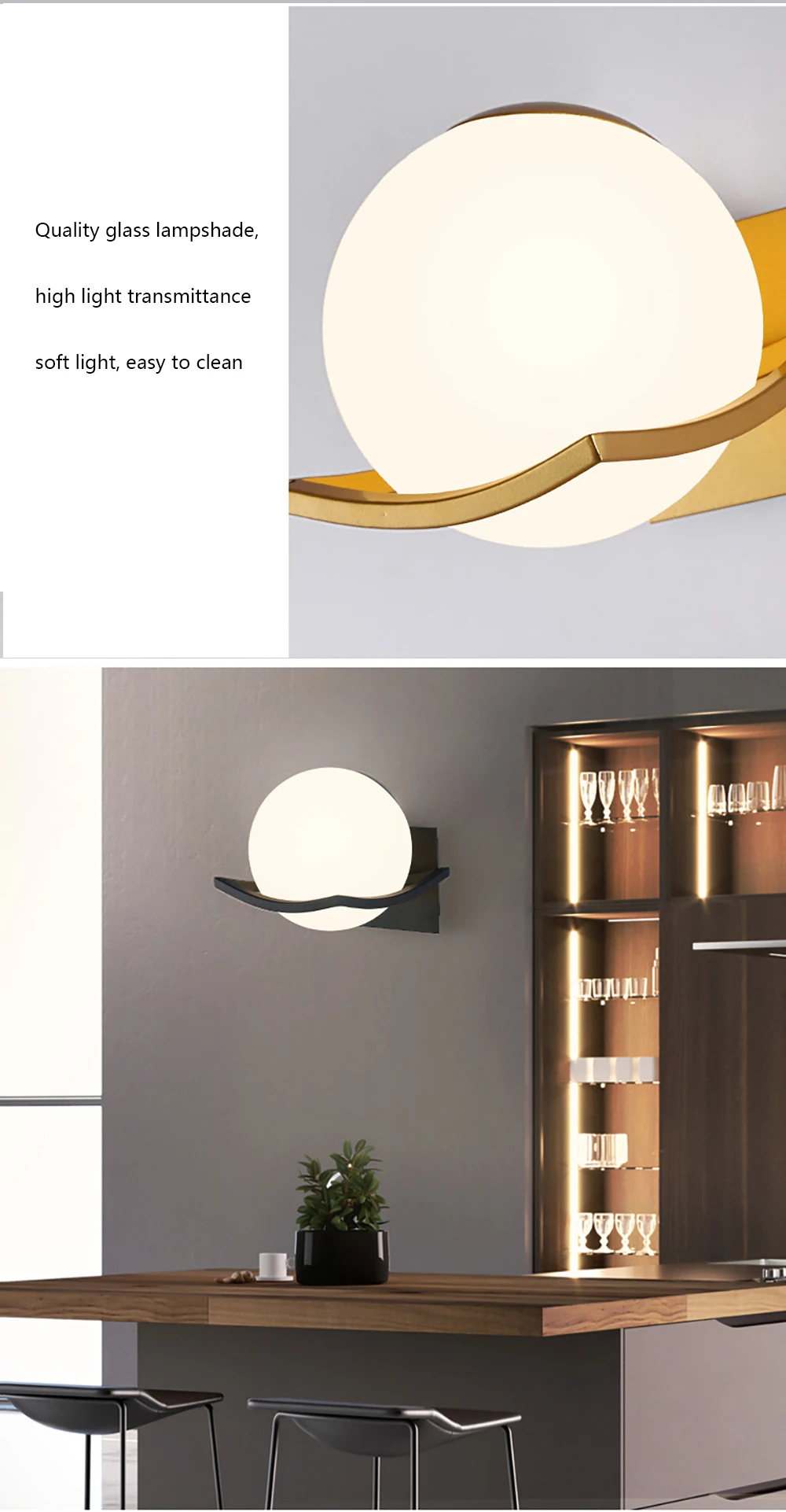 Креативный лунный современный настенный светильник стеклянный шар классические декоративные светодиодные Настенные светильники для спальни прикроватные дома черный белый золотой