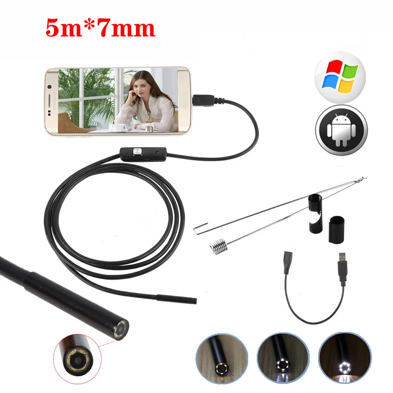 TOSPRA 5 м * 7 мм эндоскоп камера Android ПК ноутбук 6 светодиодов Регулируемый гибкий IP67