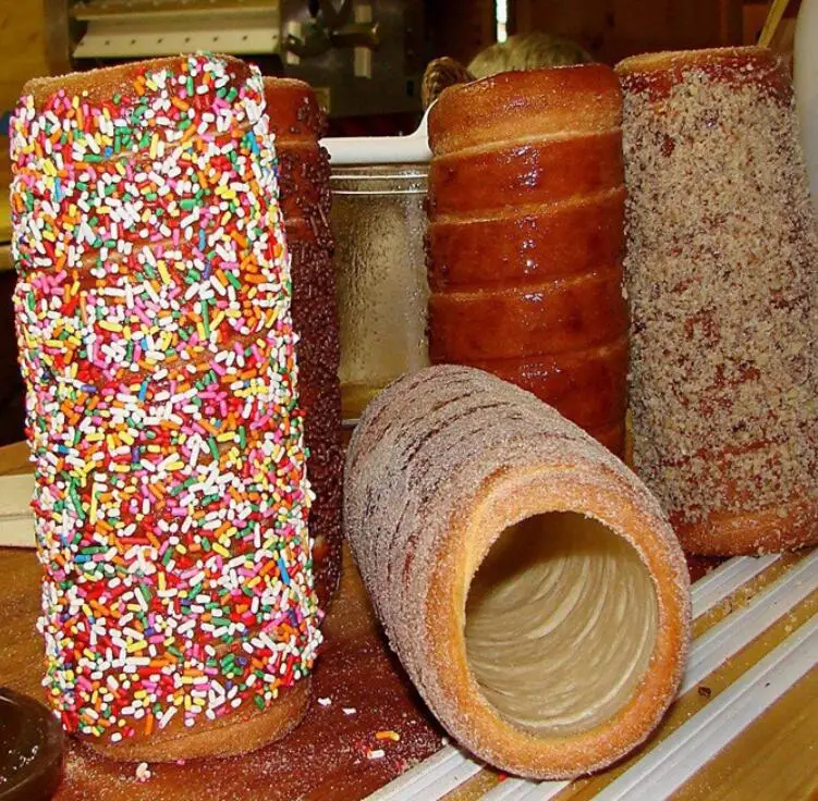 Пирог для дымохода изготовлен из сладкого дрожжевого теста, в котором закручена полоска, а затем обернута вокруг деревянного валика в гранулированный сахар. Это жаровня над машиной до тех пор, пока ее поверхность не нагревается до золотисто-коричневого цвета, во время процесса выпечки карамелизирует и образует блестящую хрустящую корочку