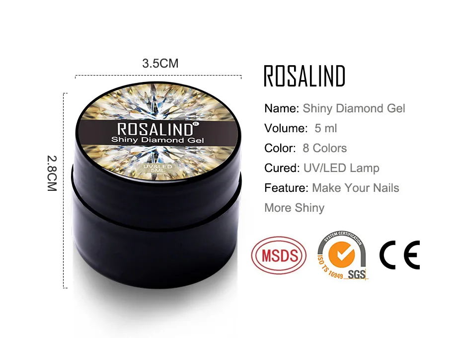 Блестящий Гель-лак ROSALIND для ногтей, Платиновый гель для ногтей, УФ-светодиодный верхний слой, полуперманентные ногти, гибридный лак для маникюра
