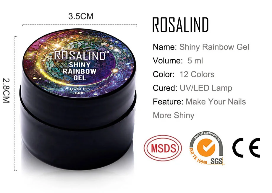 Фирменное наименование: Розалинд Название: блестящий гель Объем: 5 мл Цвет: разные цвета Излеченная: УФ/Светодиодная лампа Мы уверены, что наш Гель-лак является лучшим качеством на Aliexpress. -Качество-наш первый приоритет. -Легкий, почти без запаха (только верхнее покрытие и основа имеют умеренный запах), мы применяем только органическую текстуру для защиты вашего здоровья. -Цвет будет сиять до 30 дней. -Цвета на выбор, подходят для всех случаев.