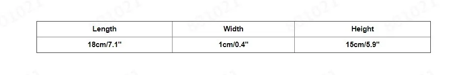 Размеры:18См (Д) x1см (Ш) x15см (В)/7,1 (Д) x0.4 (Ш) x5.9 (в)"