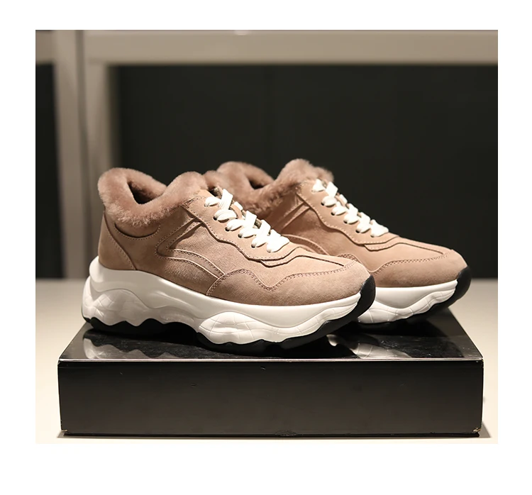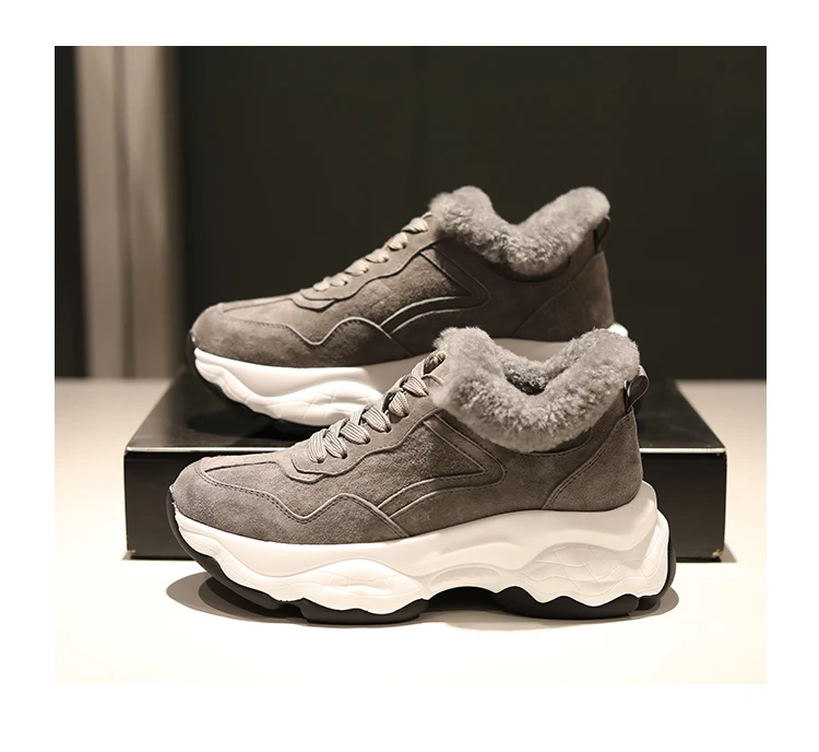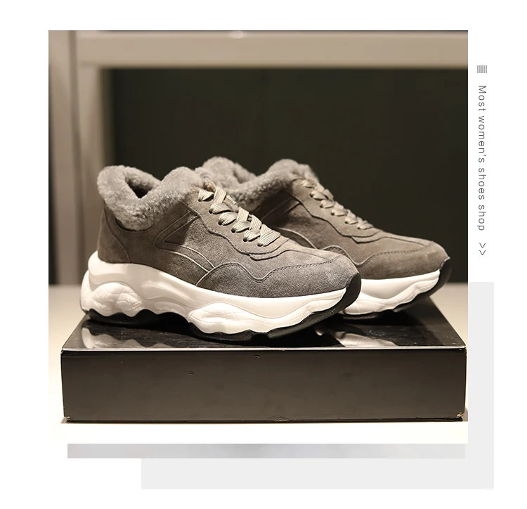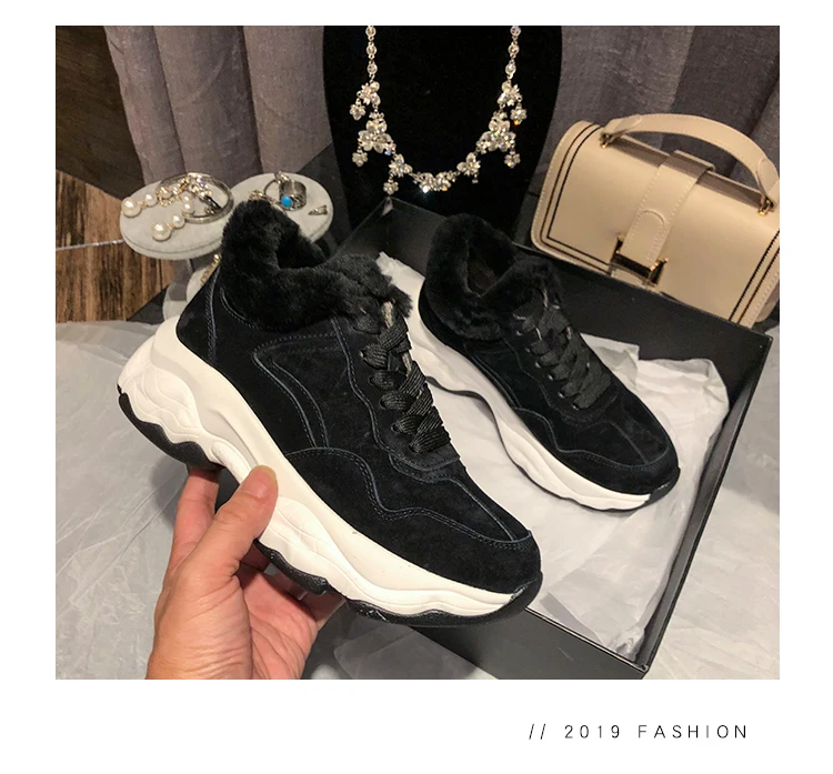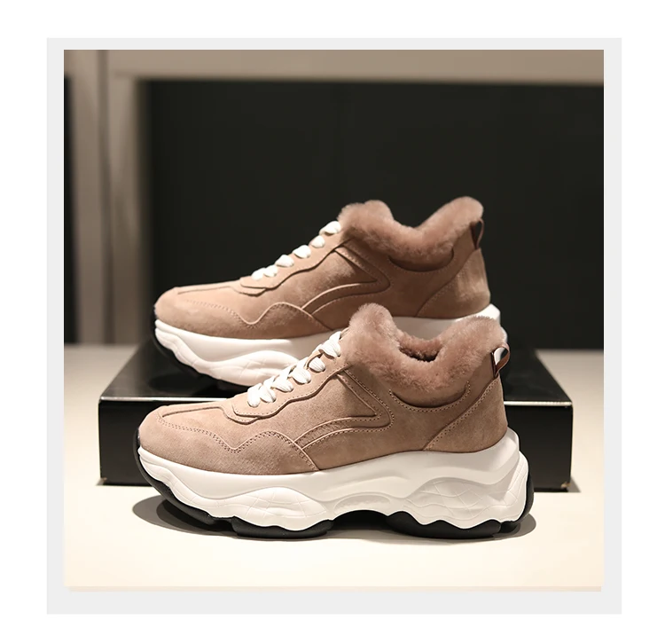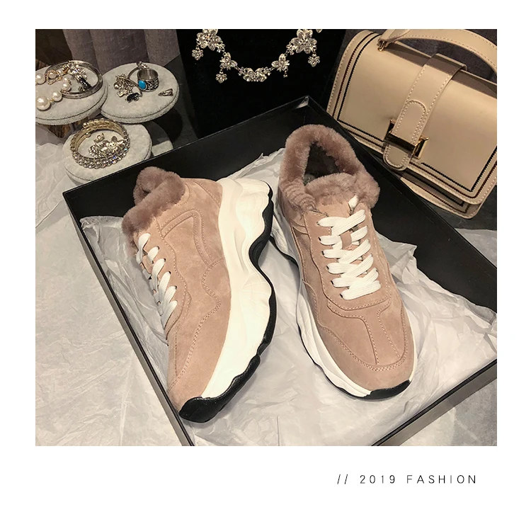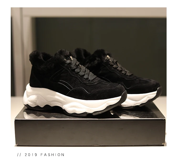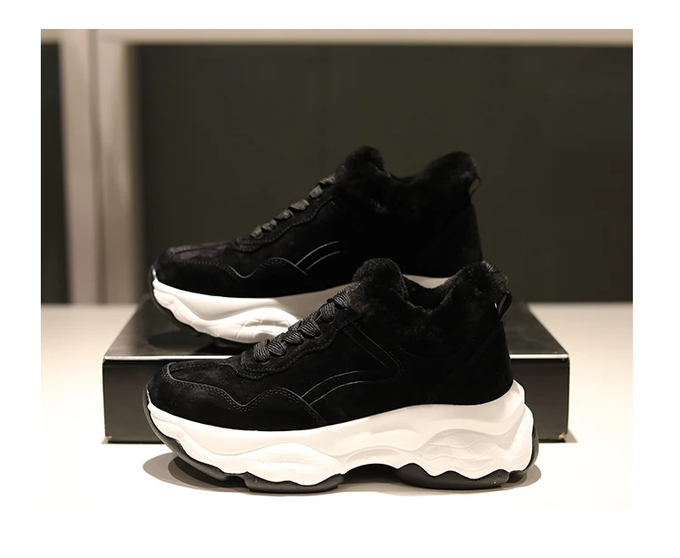 Fujin/Женская обувь на плоской платформе Зимние плюшевые меховые теплые кроссовки