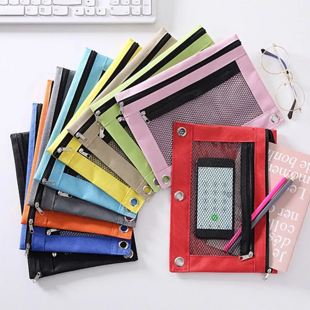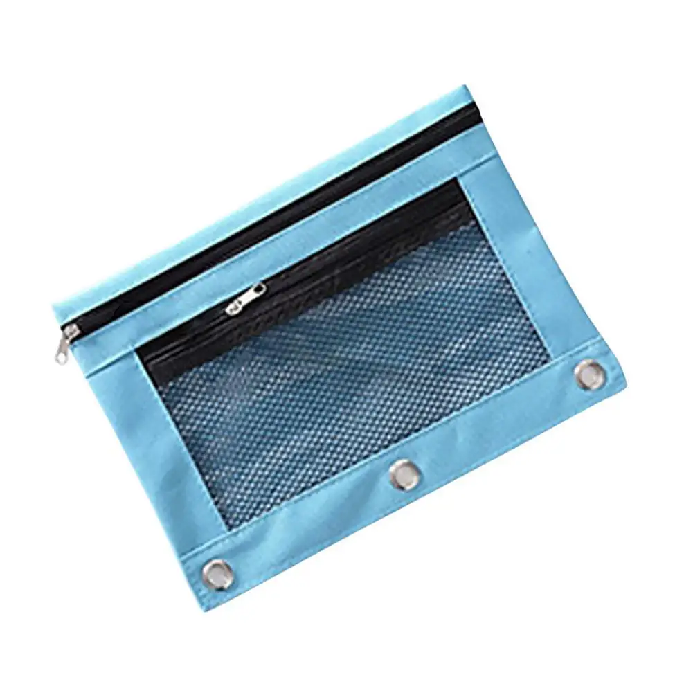 Футляр для карандашей 3 связующее кольцо двойные канцелярские принадлежности на молнии сумка ткань Оксфорд двойной карман сетка окно карандаш мешок многоцветный # L4