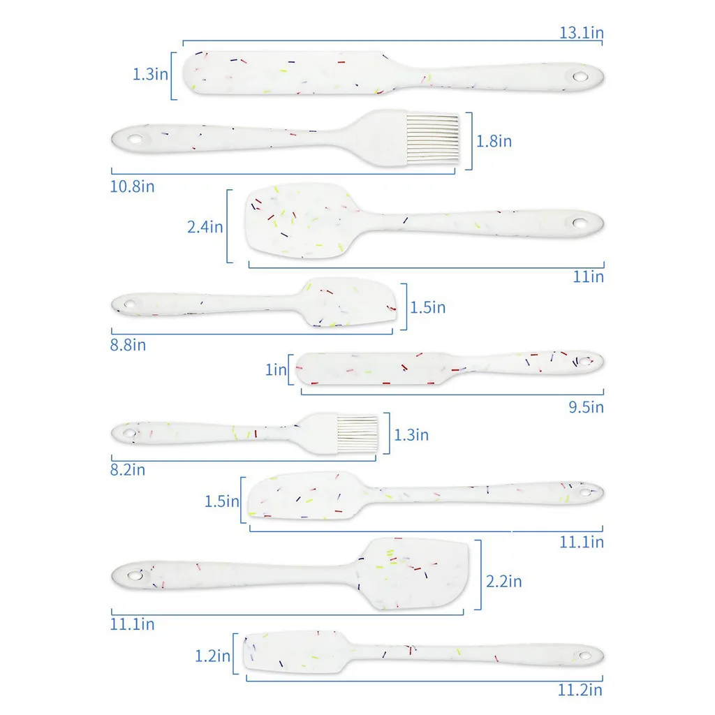 Хорошо выглядит, цвет-белые карамельные зерна по сравнению с цветами других силиконовых шпателей, наш набор шпателей, безусловно, более особенный, чистый белый леденцовый цвет силиконовых шпателей может приносить хорошее настроение кулинару.