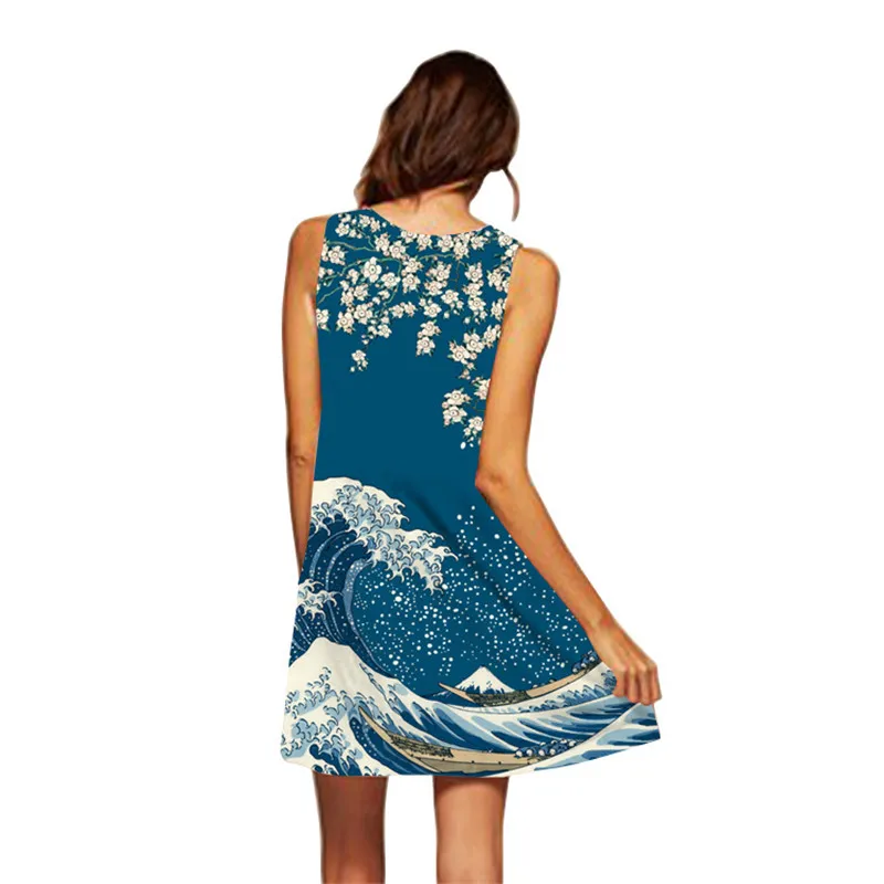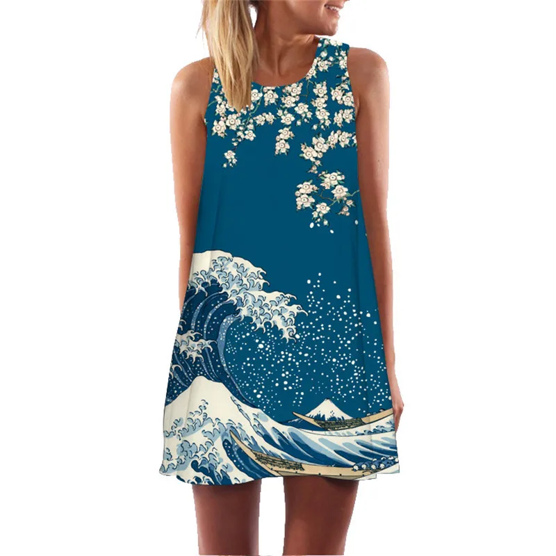 Женское платье-трапеция с объемной волной Kanagawa, свободное шифоновое платье-халат 2020, сексуальное короткое пляжное летнее мини-платье