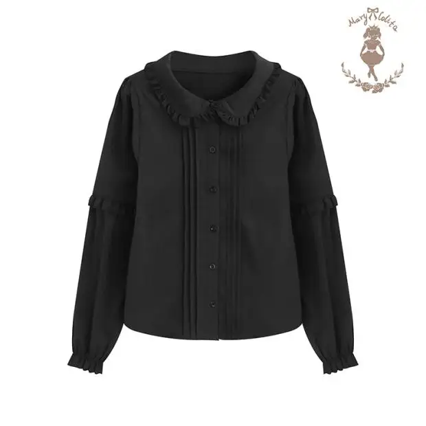Осенне-зимняя Милая рубашка в стиле «лолита» в стиле ретро с воротником «Питер Пэн» и пышными рукавами; Бархатная рубашка в викторианском стиле; kawaii; Готический топ в стиле «лолита» для девочек