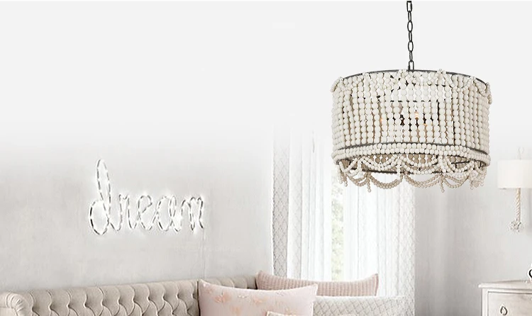 Деревянный подвесной светильник Лофт розовый/белый деревянный бисерный светильник синий цвет Американский Скандинавский французский подвесной светильник ing для спальни столовой