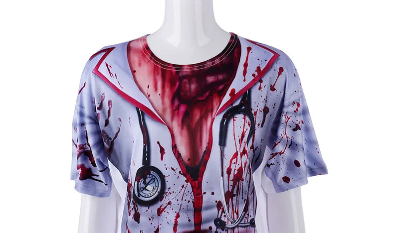 Костюм на Хэллоуин, футболка с 3D принтом для медсестры, страшный ужас, дьявол, призрак, косплей, готический костюм, маскарадный костюм