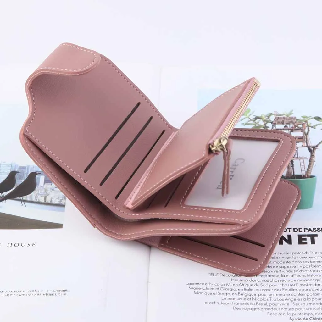 Женский новый короткий кошелек, Многофункциональный маленький кошелек на молнии, три сложения, сумка для карт