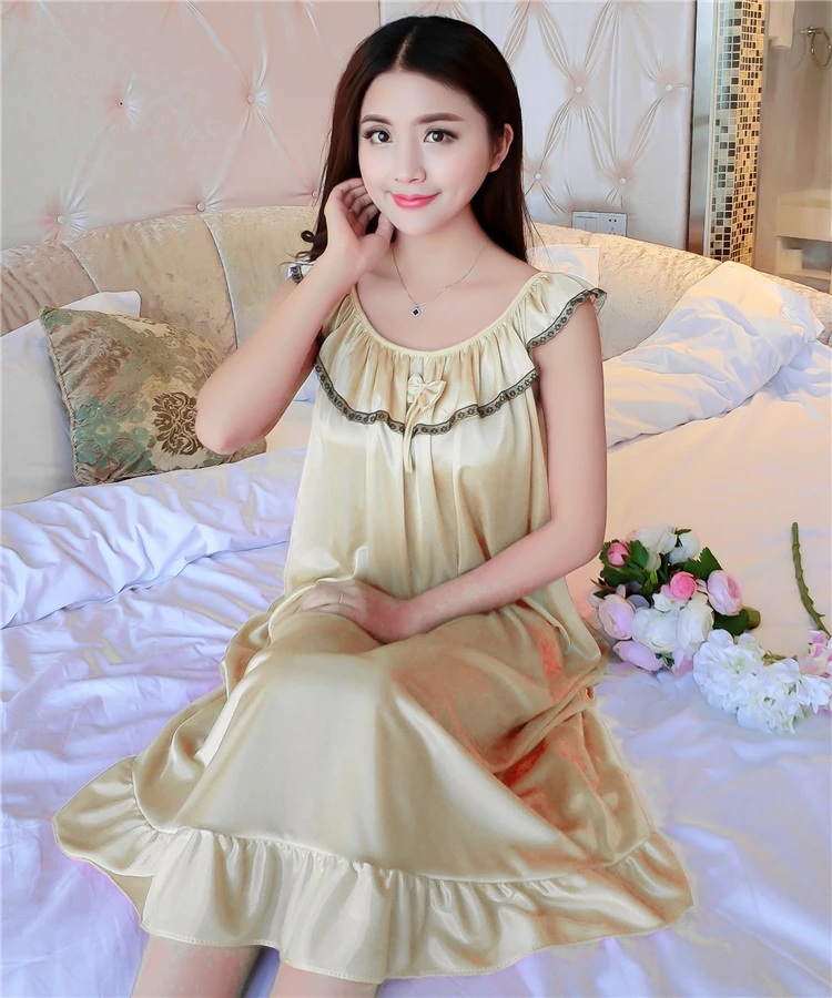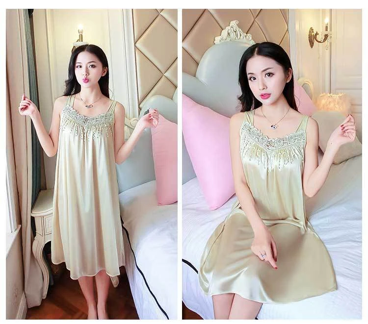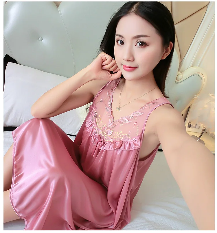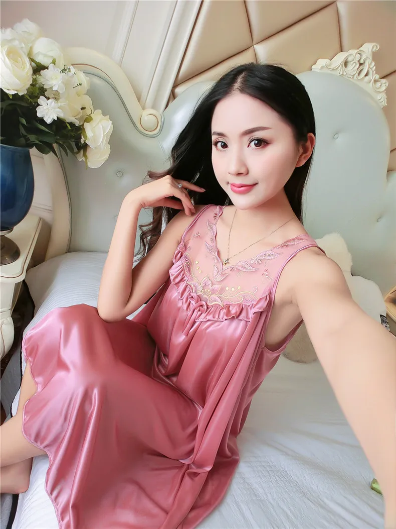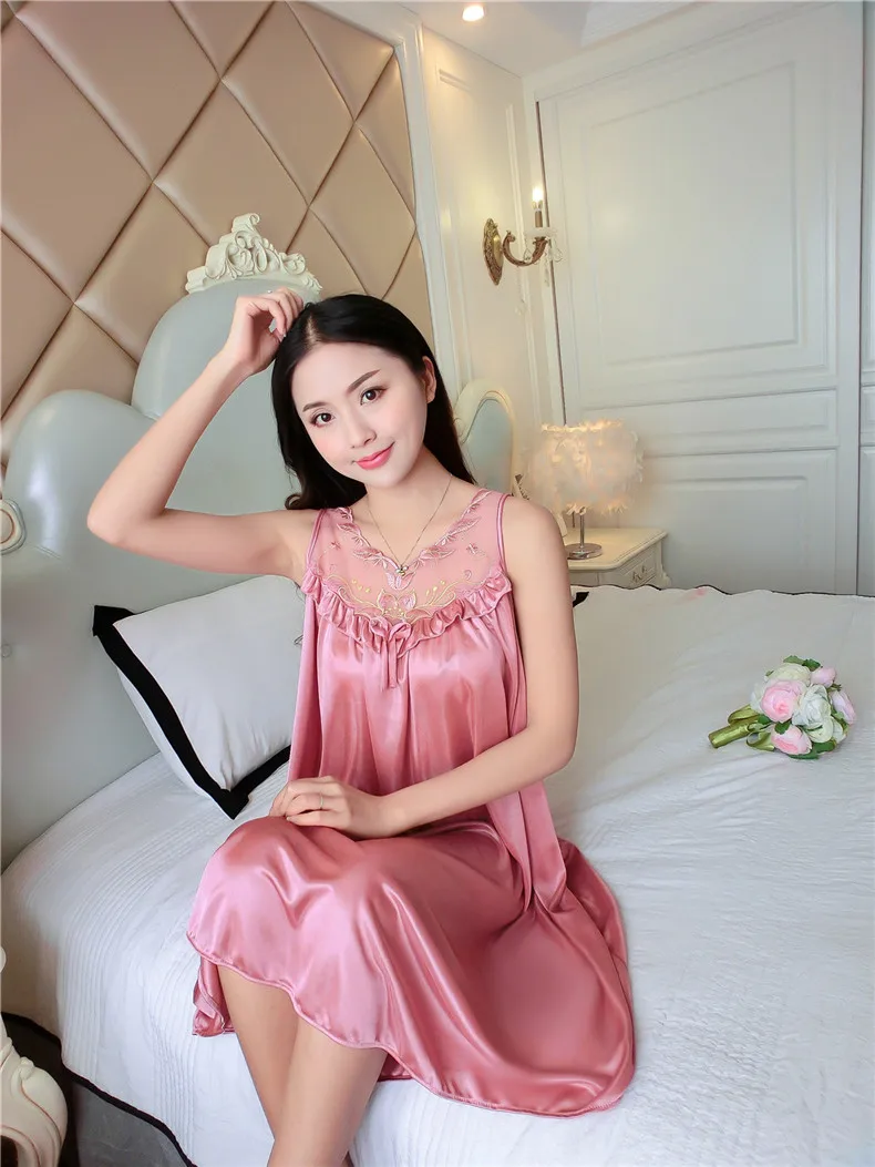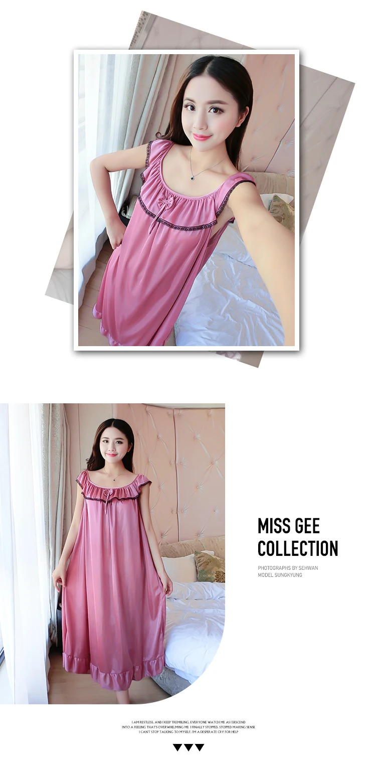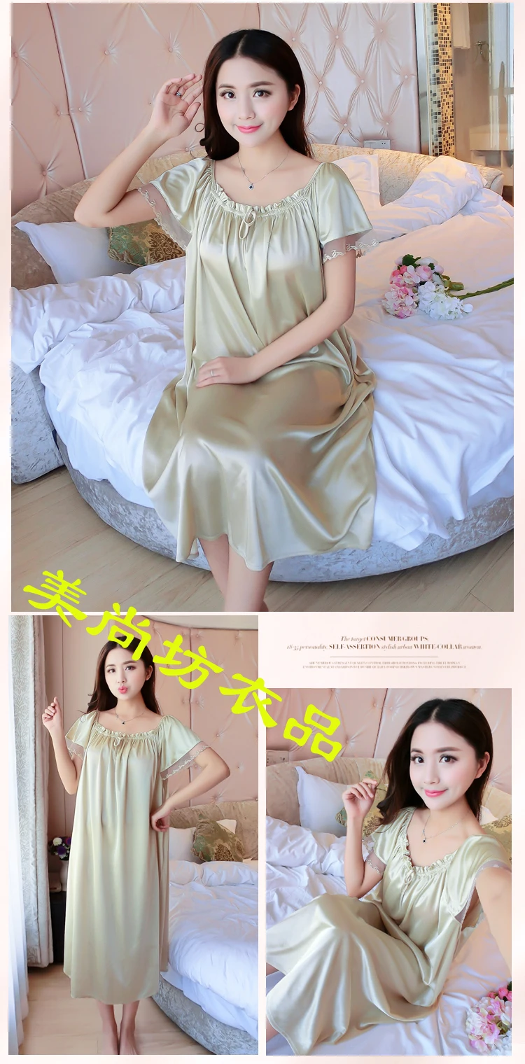 Летняя шелковая M-4XL ночная рубашка для женщин, женская свадебная ночная рубашка для невесты, сексуальное ночное белье размера плюс, домашняя одежда для сна