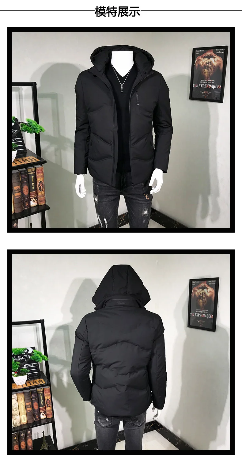 Мужская зимняя куртка средней длины с воротником-стойкой из натурального меха |
