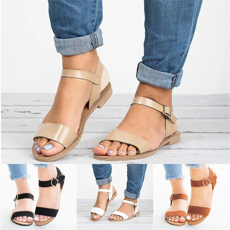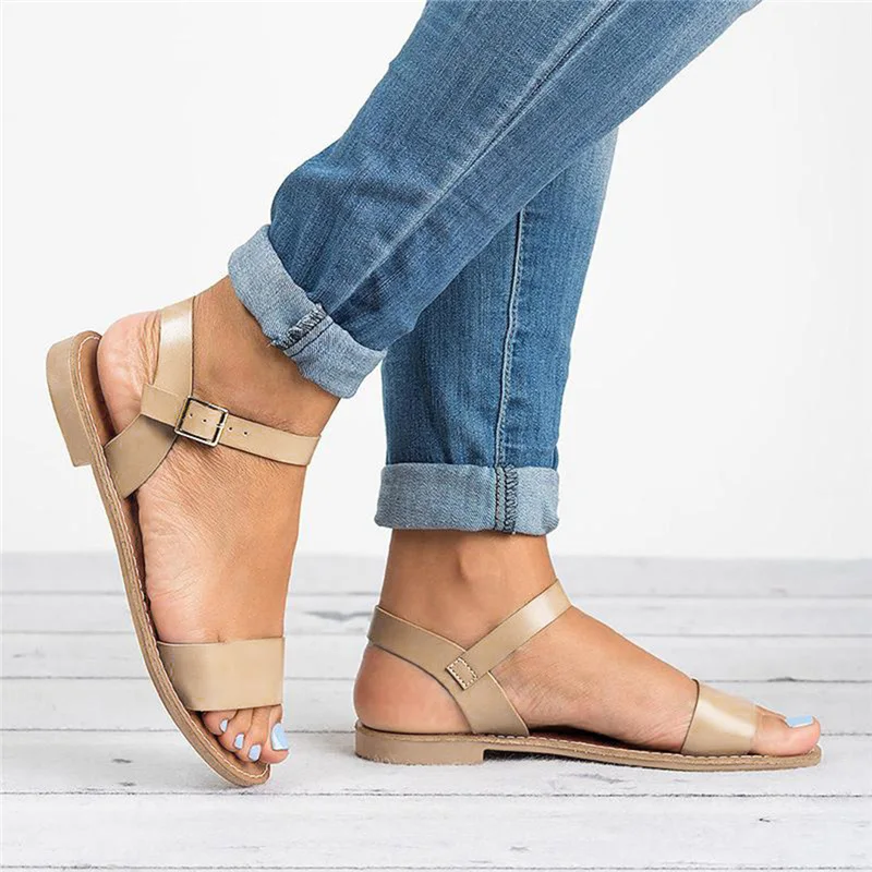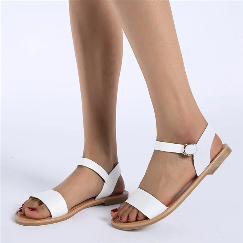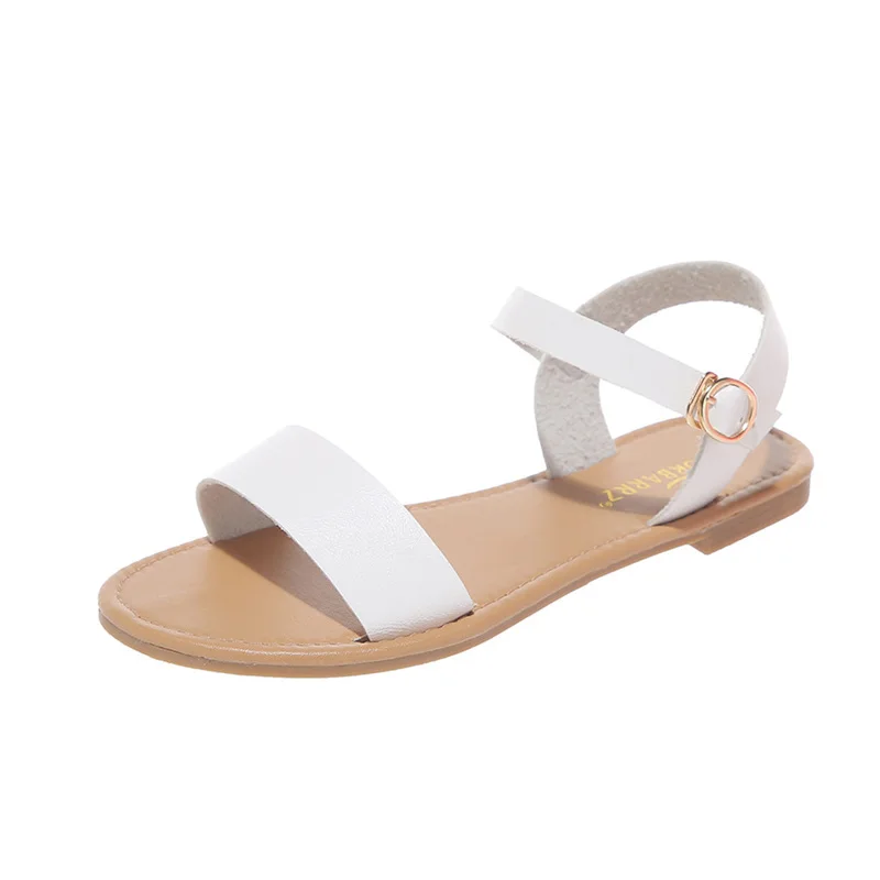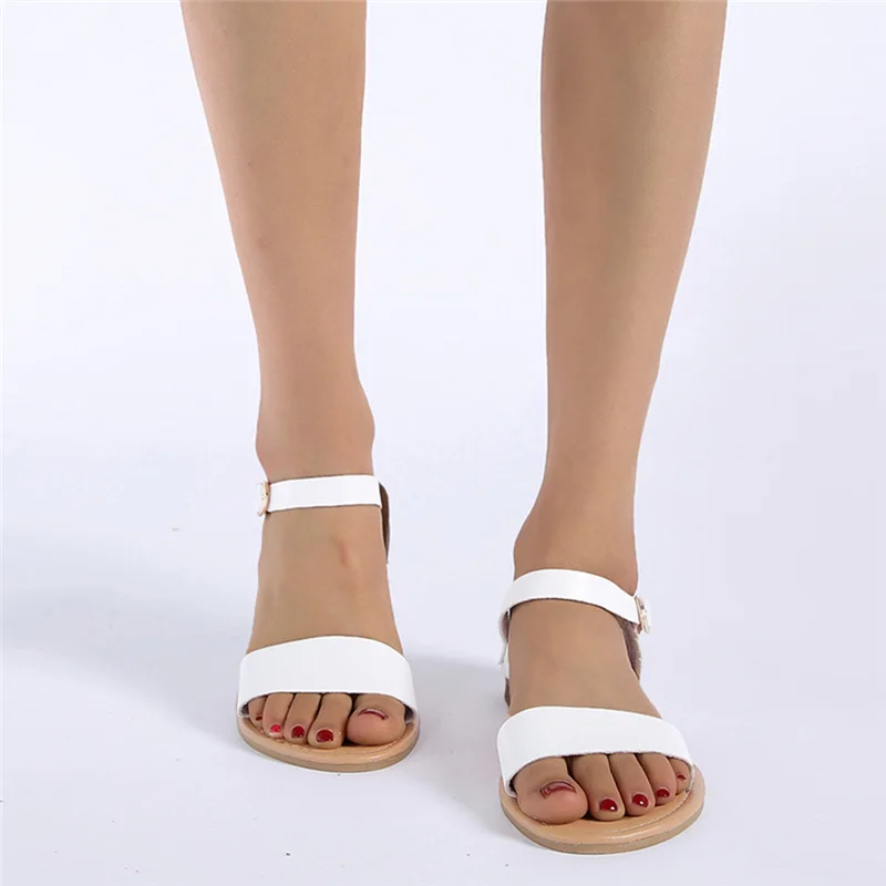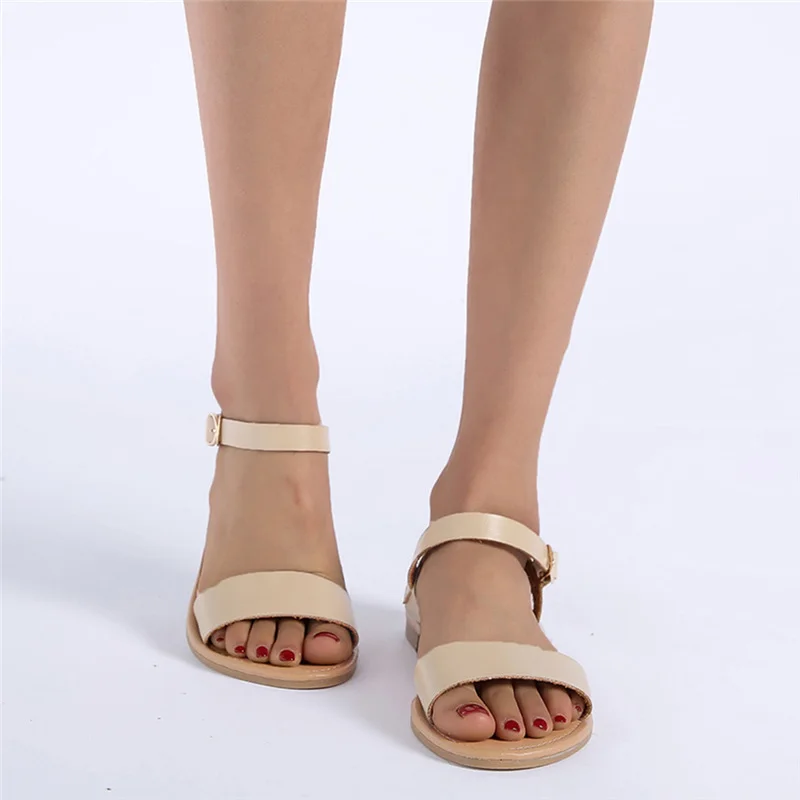 Женские однотонные босоножки на плоской подошве, с открытым носком, в римском стиле; Повседневная обувь; Сезон лето
