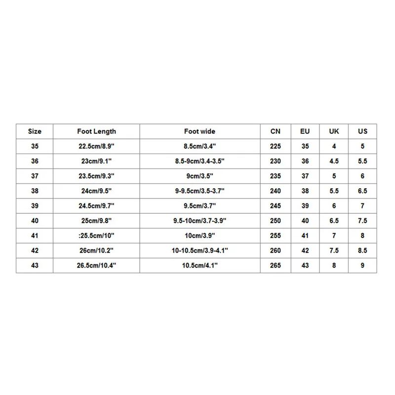 | Размеры: 35 | Foot Длина: 22,5 см/8,9'' | При покупке обувь на широкую ногу: 7,5 см/3'' | CN:225 | ЕС: 35 | UK:4 | Свяжитесь с нами: 5 |