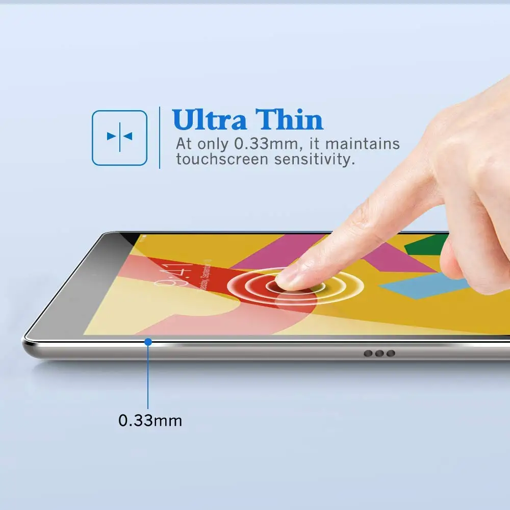 Экран протектор для iPad 7th поколения 10,2 дюймов 2019 новым тонким бумажником. Твердость 9H обеспечивает максимальную защиту планшета от нежелательных потертостей и царапин ножом, клавишами и некоторыми другими твердыми веществами, толщина 0,33 мм помогает сохранить оригинальный опыт касания. Олеофобное покрытие уменьшает отпечатки пальцев и жирные полосы. Простая установка, точный крой и дизайн, автоматически прикрепляется к экрану гладко, без хлопот и без пузырей.