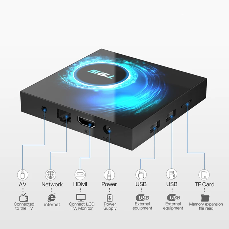 Процессор: H616 четырехъядерный cortex-A53 частота: 1,5G Графический процессор: Mali-G31 MP2 ОС: Android 10 Вспышка: 32 ГБ/64 ГБ SDRAM:4 Гб Wifi: 2,4G Поддержка формата декодера: VP9-10 профиль-2 до 6K @ 30 кадров в секунду H.265 HEVC MP-10@L5.1 до 6K @ 30 кадров в секунду Высокое качество видео выход: SD/HD Макс. 6K пикселей LAN:Ethernet: стандарт 10/100 м RJ-45 4K2k hd декодирование: 6K H.265 аппаратное видео декодирование и выход 6K