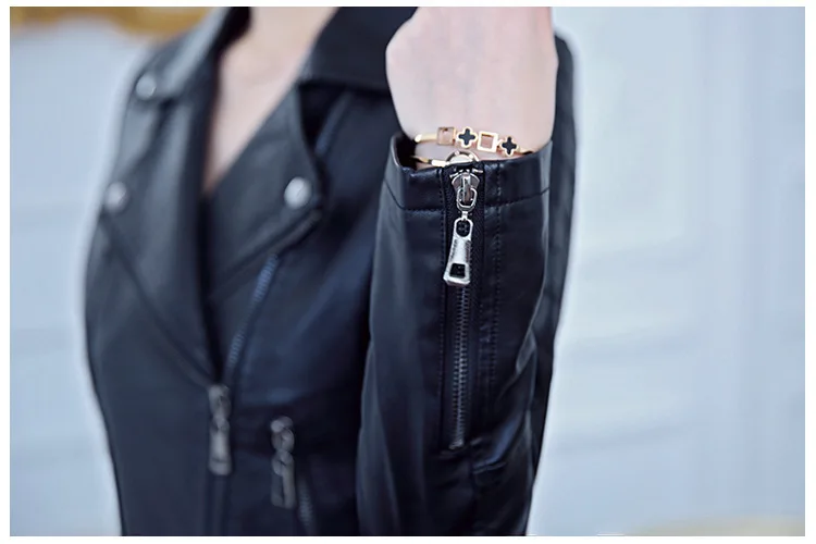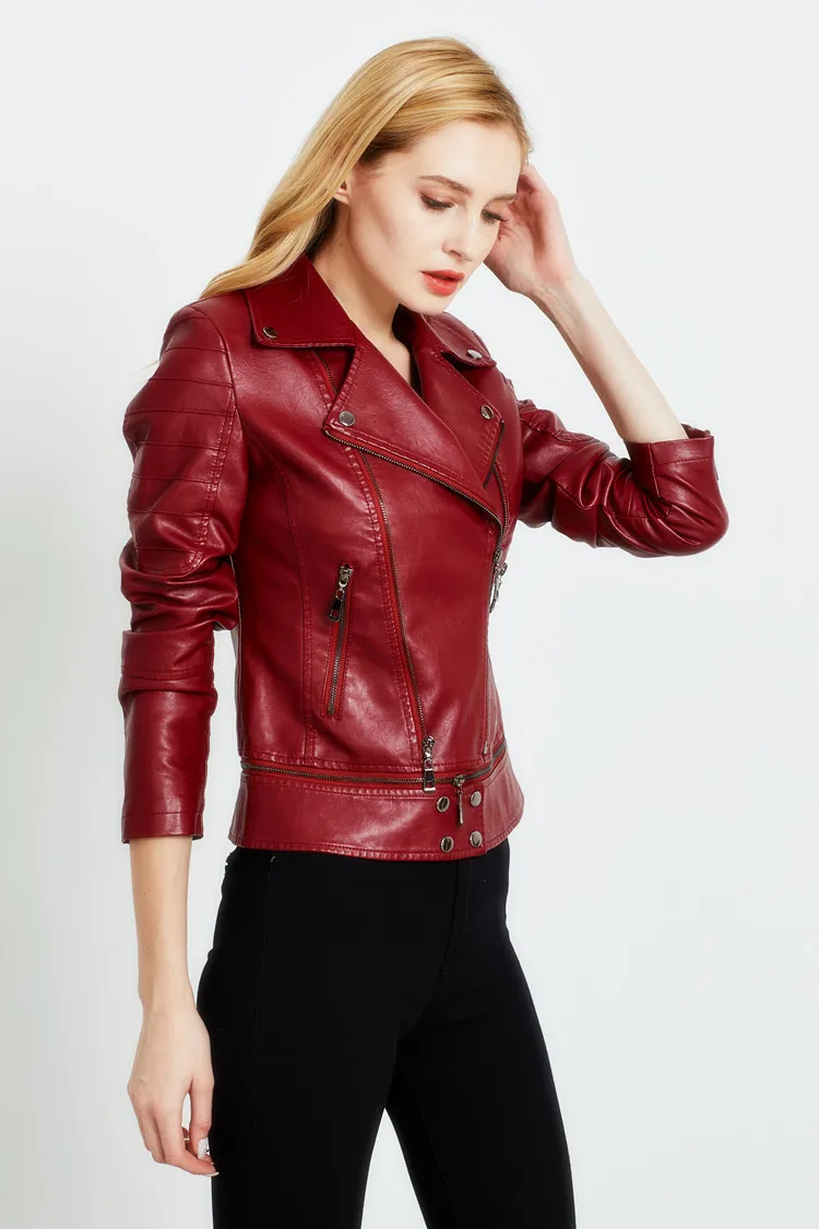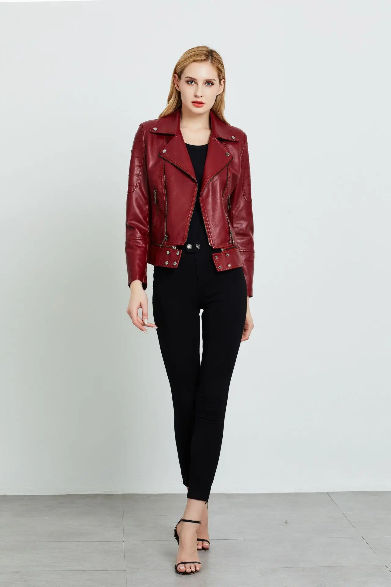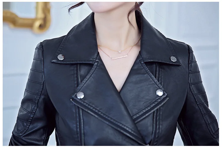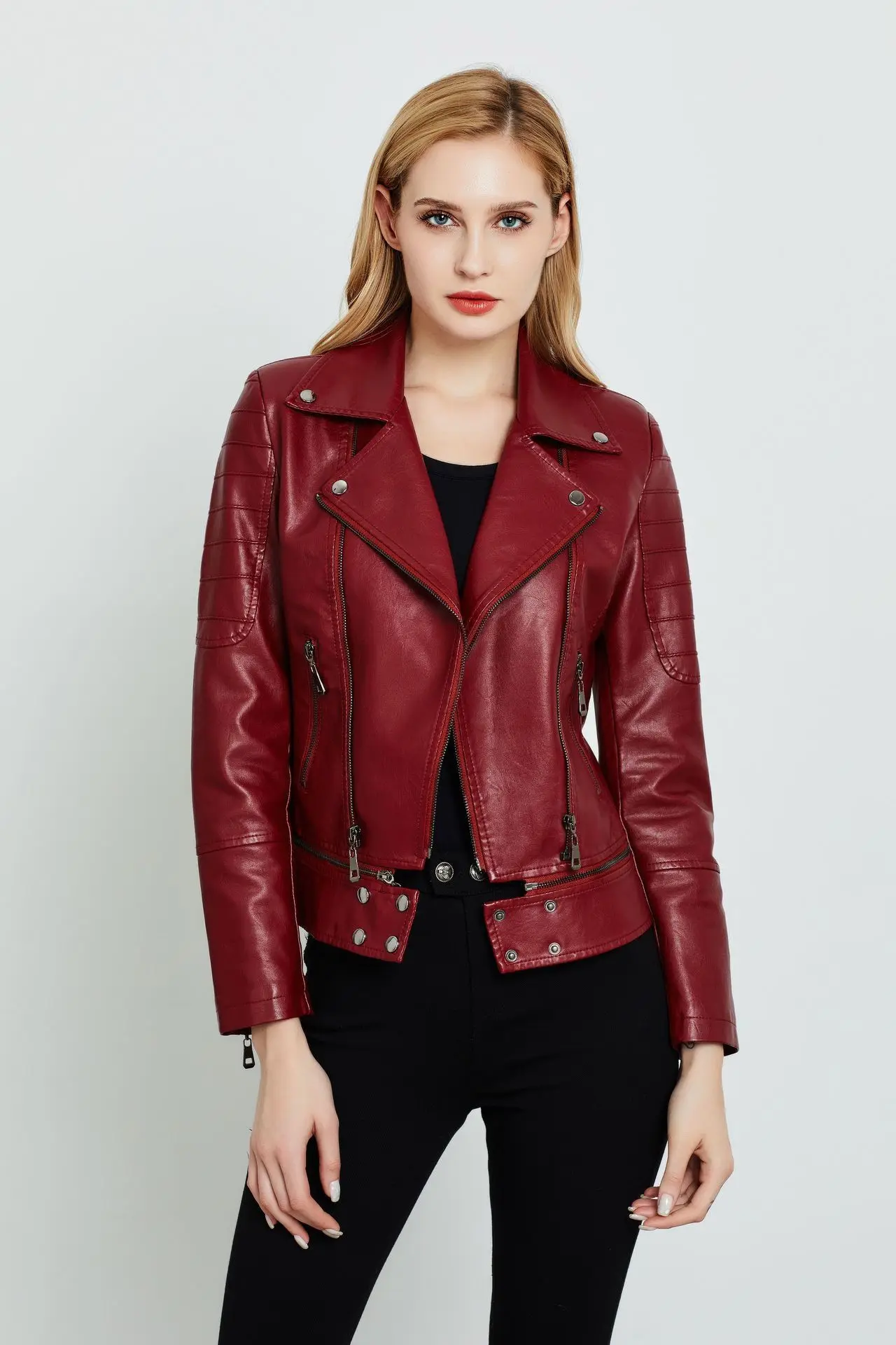 Женская мотоциклетная куртка с заклепками черная короткая приталенная большого