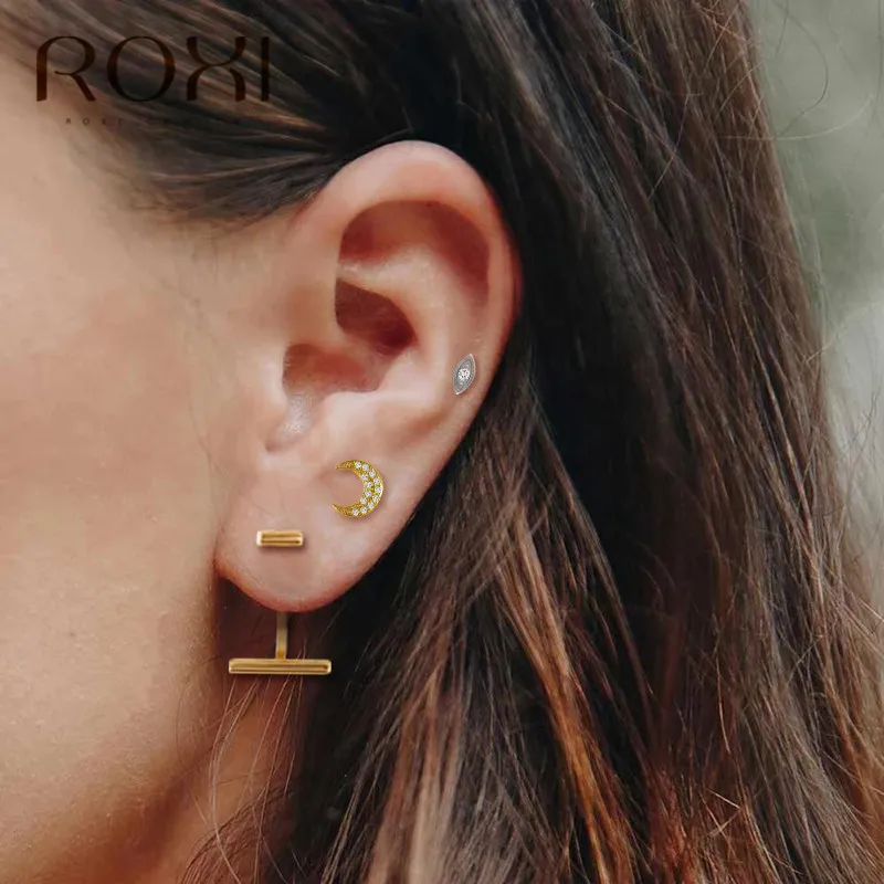 ROXI минималистичные серьги-гвоздики, 925 пробы, серебряные серьги для пирсинга, серьги для женщин, Bijoux Boucle d'oreille