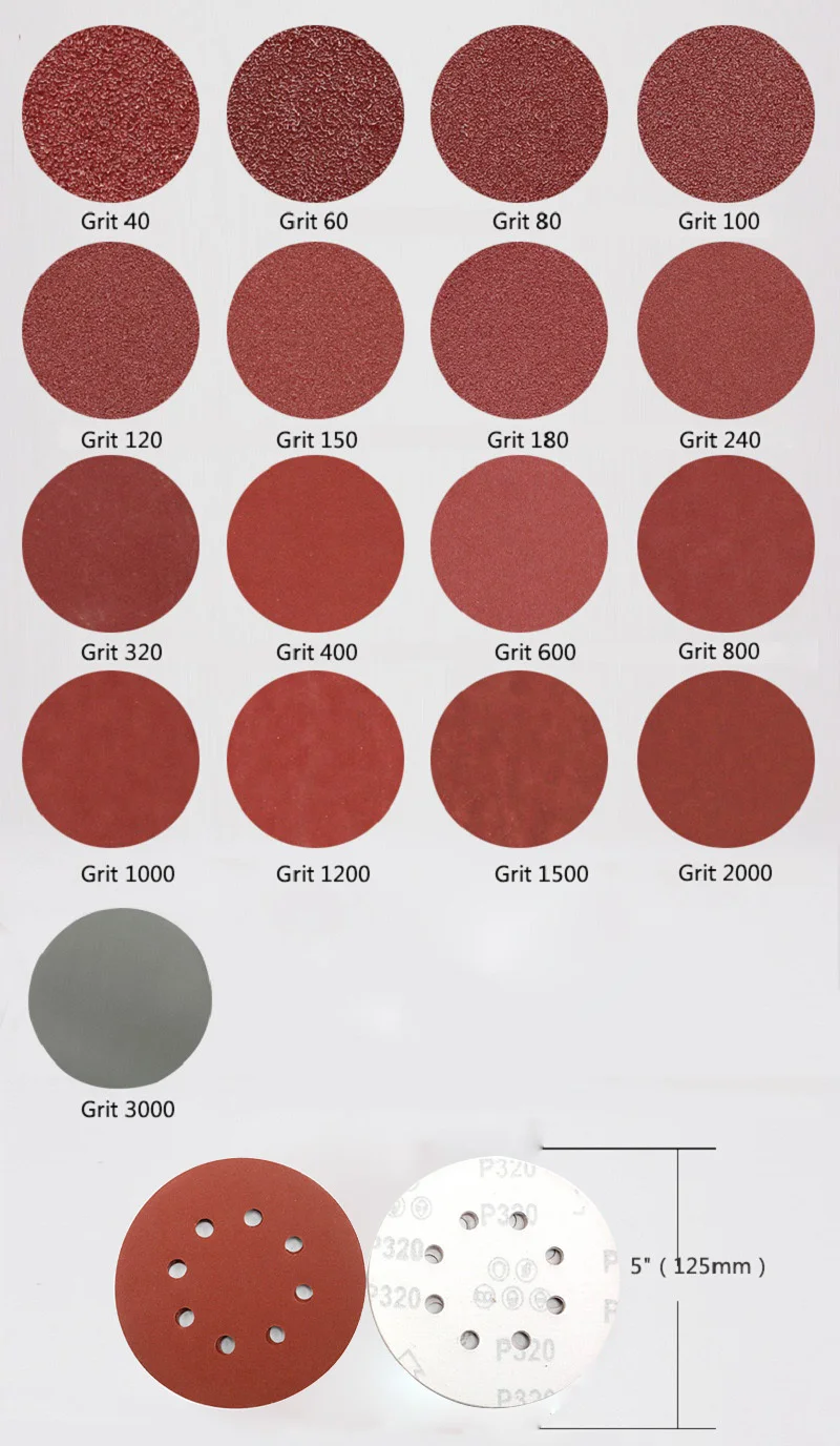 10 шт. липучка 5 "125 мм шлифовальный диск зернистость от 40 до 3000 Песочная бумага для шлифовального станка 8 отверстий набор песочной бумаги абразивный диск для полировальной машины