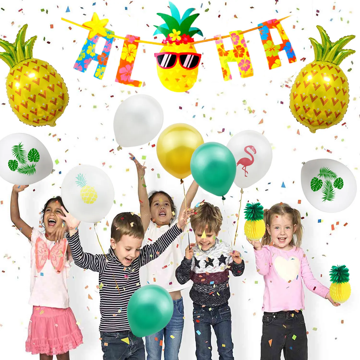 Описание продукта: 🌴🌴Гавайскую вечеринку украшения🌴🌴 Идеальный пакет, который дополнит вашу тропическую вечеринку! Наши продукты искусно сделаны вручную только из лучших материалов и будут служить Наиболее привлекательными чертами в вашем luau, bachelorette, день рождения и/или тематической вечеринке! В комплект входит следующее: 🌴24 шт 12 дюймов латексные шары (в каждом стиле 4 воздушных шаров каждый) 🌴4 шт 27 см ананас сотовый шар 🌴2 шт. 80x48 см шар из ананасовой фольги 🌴4 шт. 35x29cm листья в форме Панциря Черепахи 🌴1 шт. «Aloha» баннер 🌴1 шт. 5 мм x 10 м лента для воздушных шаров Идеально подходит для: ⭐Луо ⭐Летнее праздничное платье ⭐Девичник ⭐Гавайский ⭐Для дня рождения ⭐Свадебное платье ⭐Праздник Спецификации пакета: Материалы: бумага, латекс, алюминиевая фольга Размер шара из фольги ананаса: 80x48 см Листья в форме Панциря Черепахи Размер: 35x29cm Размер шара с Сотами ананаса: 27 см -Теплый совет: Уважаемый покупатель, из-за светового эффекта, яркости монитора, ручного измерения и т. д. могут быть некоторые незначительные различия в цвете и размере между фотографией и фактическим товаром. Искренне надеемся на ваше понимание! Спасибо! -Шарики изготовлены из высококачественного материала, нетоксичные и безопасные для использования. Латексные воздушные шары будут иметь небольшой вкус, поместите их в пустое место на некоторое время. -Не заливайте слишком много воздуха в воздушные шары, 80%-90% достаточно, и, пожалуйста, будьте осторожны, когда вы надуваете их. -Шары с конфетти поставляются с конфетти внутри, после надувания, пожалуйста, аккуратно протрите ковром, шелком, волосами (лучший способ) и скрутите шары. Статическое электричество-хороший друг, который поможет вам сделать палка с конфетти по бокам воздушного шара. ❤Спасибо за выбор и поддержку нашей продукции, желаю вам счастливой жизни, спасибо!❤