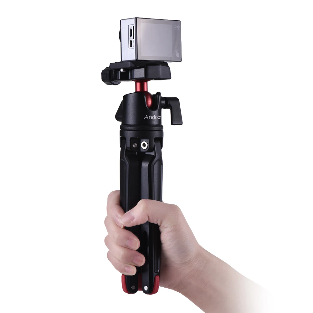 Мини-штатив Andoer используется для DSLR камеры, смартфона, цифровой видеокамеры, экшн-камеры и т. Д. Его высота может регулироваться от 10,7 до 21 см/4,2-8,3 дюйма, что делает его идеальным для селфи и макросъемки. Есть отверстия на ногах, вы можете привязать его к дереву с веревкой для удовлетворения особых потребностей съемки.