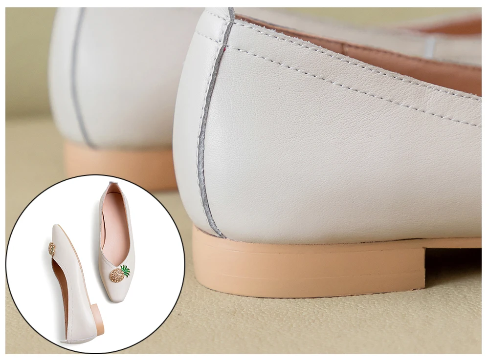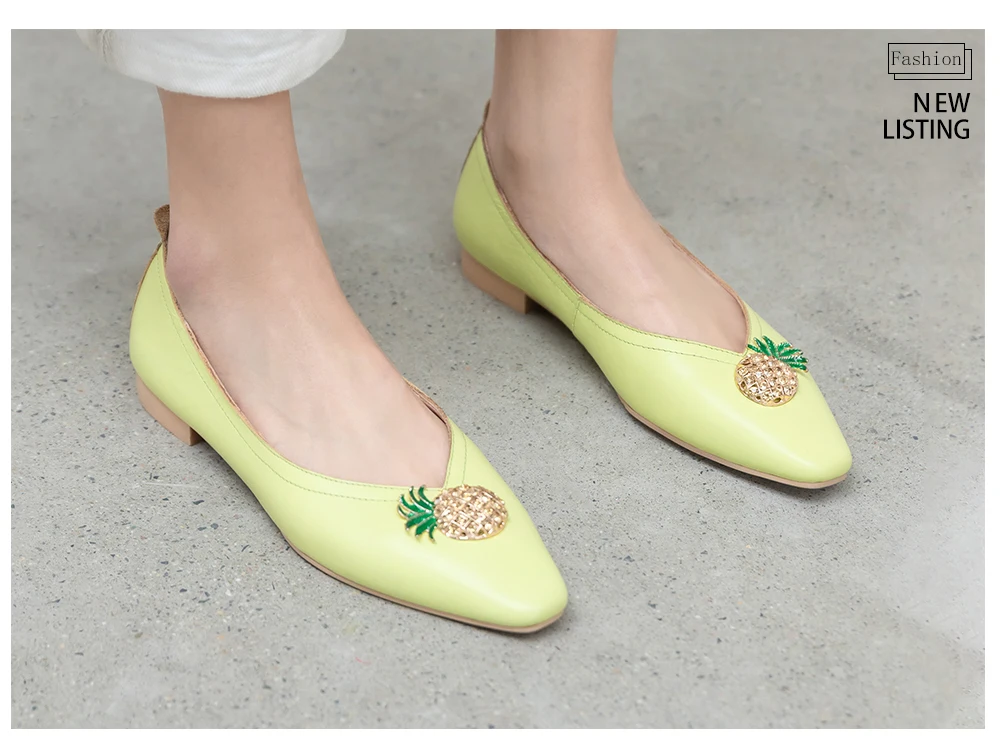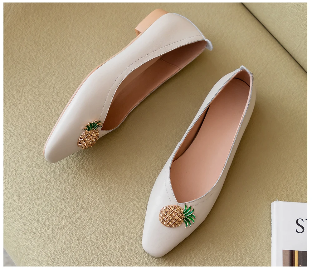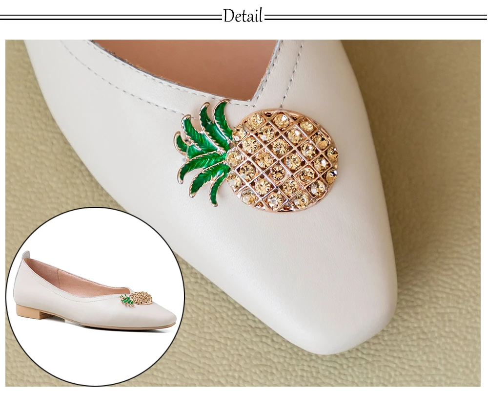 Украшение в виде ананаса милое и нежное, что делает обувь более элегантной.