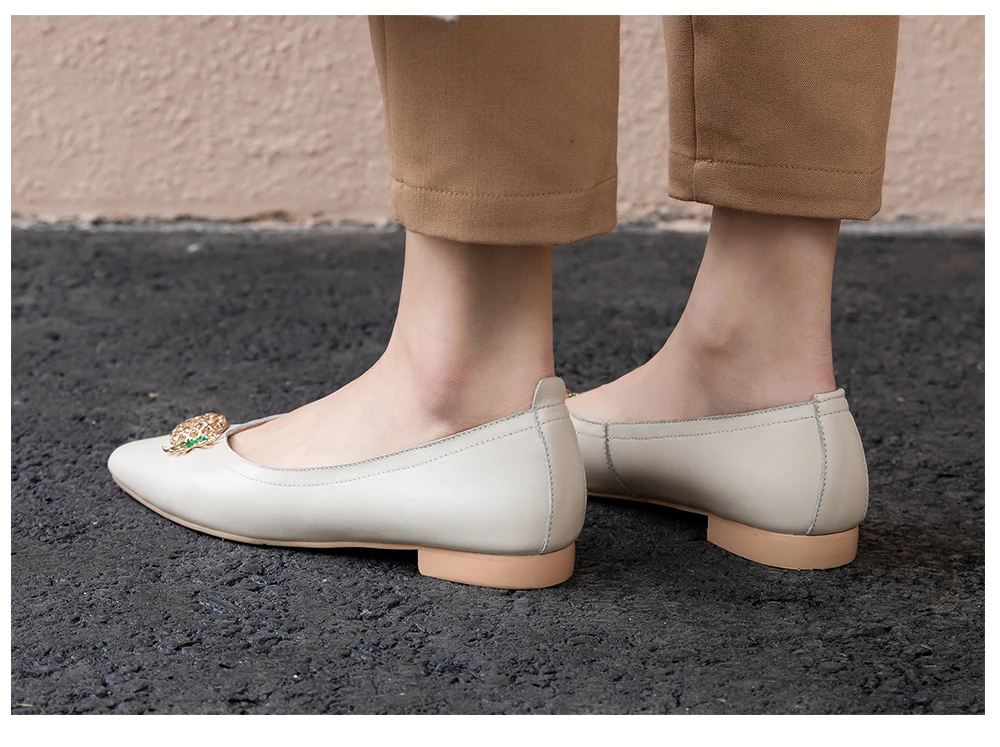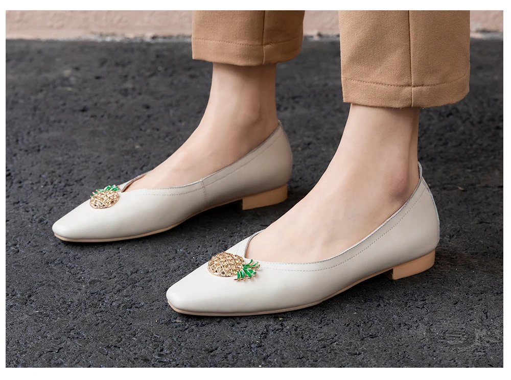 SOPHITINA/женские лоферы на плоской подошве с милым квадратным носком и металлическим украшением в виде ананаса; Удобная кожаная прогулочная обувь для вождения на низком каблуке; PO473