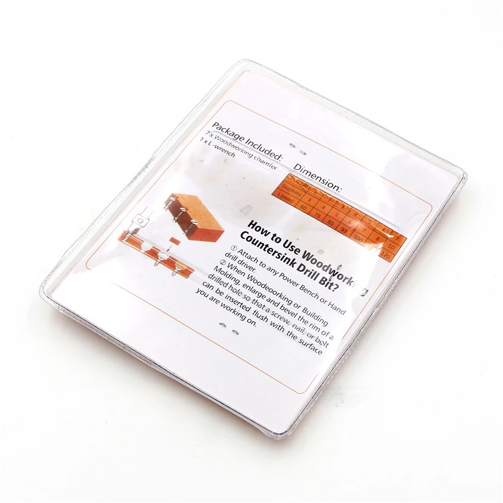 7 шт. набор включает в себя биты для сверления пилотных отверстий для винтовых размеров 3 мм, 4 мм, 5 мм, 6 мм. Специально разработанная стальная Столешница или столешница пилота отверстие. Регулируемая глубина рукава с гаечным ключом. Сверло и столешница для деревянных винтов без изменения бит. Длина сверления может быть отрегулирована для различных винтов длины просто путем ослабления и затягивания установочного винта. Фаска 5 флейт, в процессе использования, может разрядить древесину более быстро, Одноразовая просверленная гладкая крышка с отверстием для раковины идеально встроена в поверхность заготовки. Характеристики: Цвет: Титан Черная фаска Материал корпуса: сталь #45 Размеры: 3 мм x 60 мм (Д) 4 мм x 75 мм (Д) 5 мм x 85 мм (Д) 6 мм x 93 мм (Д) 7 мм (диаметр) x 10 мм (Д) 8 мм (диаметр) x 11 мм (Д) 10 мм (диаметр) x 12 мм (Д) Диаметр фаски: 15,8 мм Хвостовик: 1/4 шестигранный хвостовик. Посылка включает: 7 х фаски для деревообработки 1 х шестигранный гаечный ключ