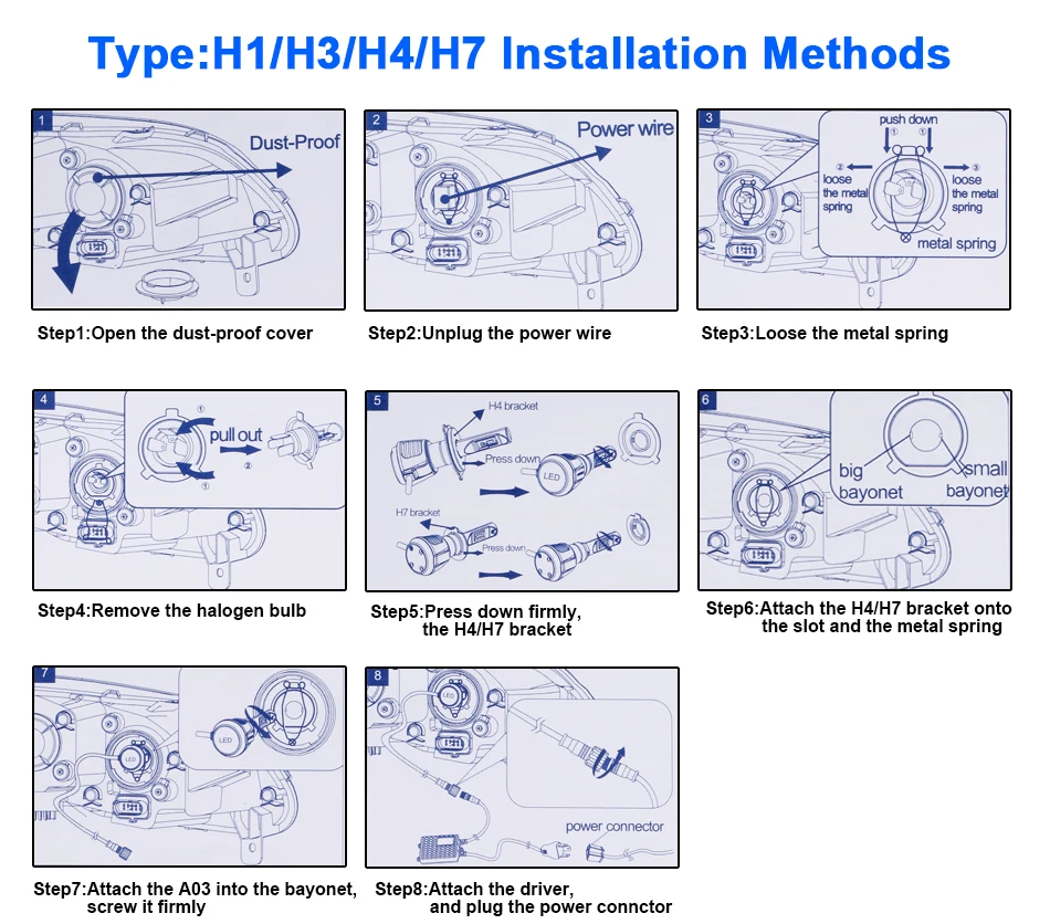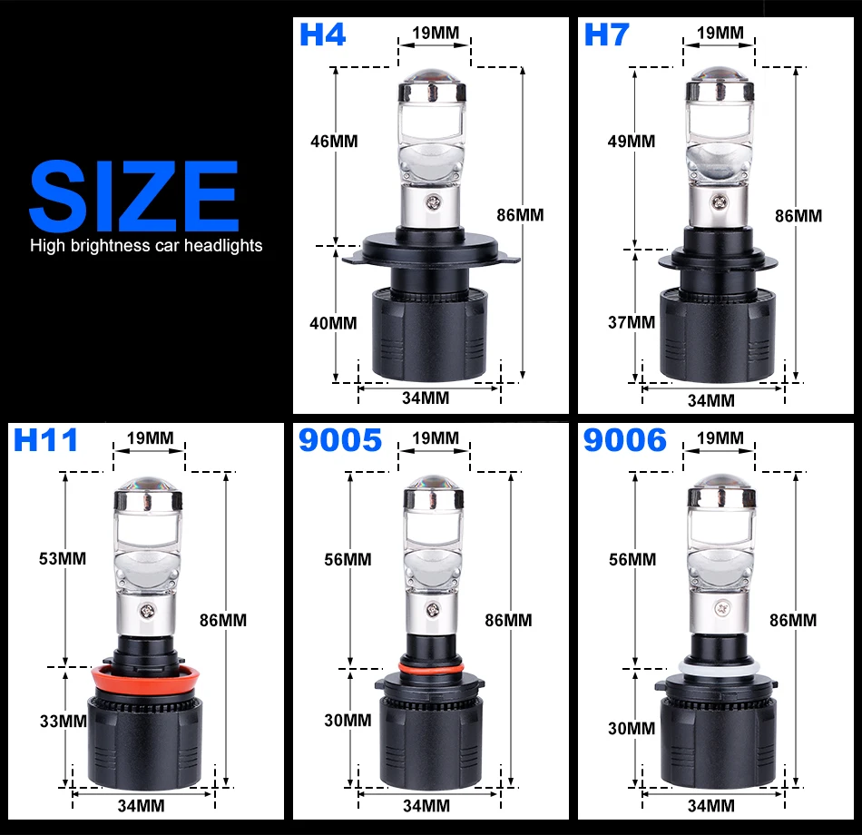 Мощность: 28 Вт/лампа 56 Вт/комплект Световой поток: черный 12000 лм/лампа. Модель: H4 H7 H11 9005 9006 светодиодный мини проектор Объектив Рабочее напряжение: 9-32 В постоянного тока (12 В, 24 В транспортных средств в наличии) Цветовая температура: 6000K белый IP67 Номинальное уплотнение воды и пыли Материал: авиационный 6063 алюминиевый профиль Рабочая температура: -40-80 градусов Обратите внимание: Левосторонний привод: рулевое колесо в левой руке, однако привод в правой части дороги. Правый Привод: руль в правой руке, однако привод в левой части дороги.