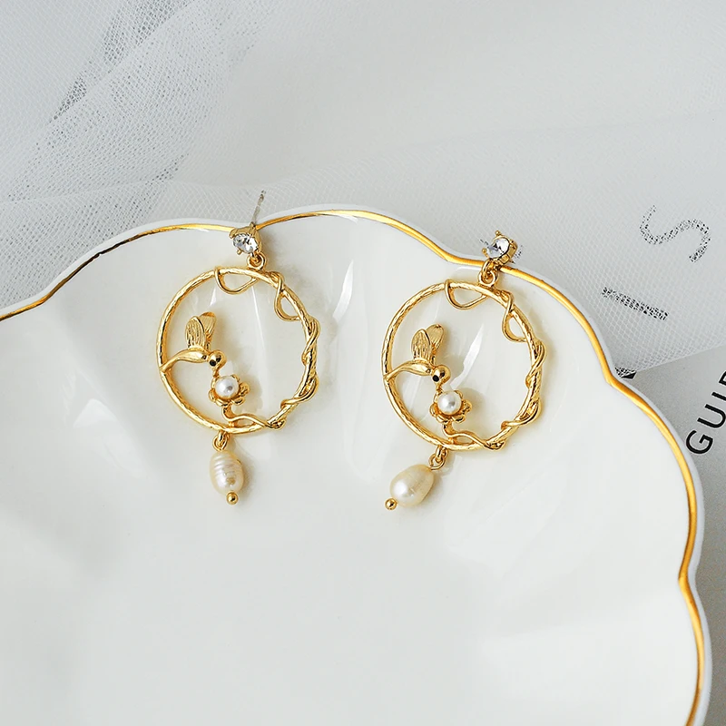 Женские серьги с цирконием длинные подвеской в виде Эйфелевой