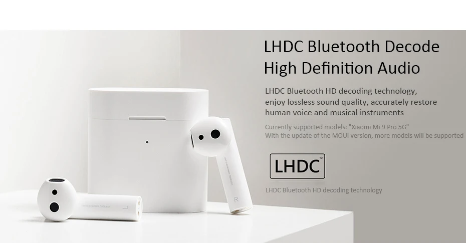 ● Аудио гарнитура высокого разрешения с истинным беспроводным дизайном ● Поддержка LHDC Расшифровка Bluetooth. По сравнению с аудиоформатом Bluetooth SBC LHDC позволяет более чем в 3 раза передавать данные, а также обеспечивает наиболее реалистичное и высокое разрешение беспроводного аудио ● Полуушной дизайн, не беспокойтесь о аллергии, удобный и легкий ● 14,2 мм композитный мембранный Подвижный блок катушки. Бас богатый и полный, и высокие частоты ясны и острые аллергии ● Также обеспечивает двойной микрофон с шумоподавлением, что делает вызов более четким, распознавание музыки ln-ear ● Поддержка прямого голосового пробуждения смарт-ассистента XiaoAI Бренд: Xiaomi Тип: в ухо Материал: АБС-пластик Характеристики: портативный Основные функции: ответ на телефон, Bluetooth,HiFi, микрофон, шумоподавление, защита от пота, голосовая подсказка Применение: спорт, работа Длина кабеля (м): 0 м Совместим с: мобильный телефон Подключение: беспроводное Сопротивление: 32 Ом Время зарядки: 1 ч Bluetooth: Да Расстояние Bluetooth: с препятствиями 10 м Версия Bluetooth: V5.0 WIFI: нет Тип батареи: Встроенный Посылка Вес: 0,128 кг Размер изделия (Д х Ш х В): 6,00x6,00x4,50 см/2,36x2,36x1,77 дюйм (ов) Размер посылка (Д x Ш x В): 10,00x8,00x6,00 см/3,94x3,15x2,36 дюймов Посылка: 1 пара наушников, 1 зарядная док-станция, 1 руководство Китая, 1 кабель Type-C