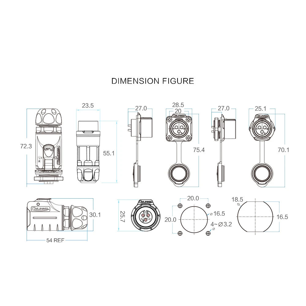 Характеристики для 2pin, 3pin, 4pin: Характеристики кабеля: 1,0 m AWG-1,5 m AWG/18-16 AWG Диаметр диапазон: Φ3mm ~ Φ7mm Контактная диаметр × номер: Φ1.5x2/ Φ1.5x3/ Φ1.5x4 Номинальный ток (A): 10A Рабочее напряжение (AC.V.rms): 400V Контактное сопротивление <2.5mΩ Повышение температуры: 10 а контактная температура ниже 30 ℃,12 А. 40 ℃↓,15A......50 ℃↓ Выдерживаемое Напряжение (A C.V) 1 минута: 2500 В Сопротивление изоляции: >500MΩ Уровень защиты: IP67 Долговечность: ≥ 500 раз Рабочая температура: -40 ℃ ~ 80 ℃ Режим подключения: вилка и отключение Монтажный провод: Припой Корпус, изоляционные детали: Высокоэффективные инженерные пластмассы Фурнитура: цинковый сплав (перламутровый твердый хром) Медные иглы: медный сплав (позолоченный 4U) Водонепроницаемый круг: силикагель Оценка воспламеняемости: UL94-V0 Характеристики для 5pin, 7pin, 8pin, 9pin: Характеристики кабеля: 0,15 м ㎡-0,2 м AWG/26-24 AWG Диаметр диапазон: Φ3mm ~ Φ6mm Контактная диаметр × номер: Φ1.0x5/Φ1.0x7/Φ1.0x8/Φ1.0x9 Номинальный ток (A): 5A Рабочее напряжение (AC.V.rms): 250V Контактное сопротивление <5mΩ Повышение температуры: 10 а контактная температура ниже 30 ℃,12 А. 40 ℃↓,15A......50 ℃↓ Выдерживаемое Напряжение (A C.V) 1 минута: 1500 В Сопротивление изоляции: >500MΩ Уровень защиты: IP67 Долговечность: ≥ 500 раз Рабочая температура: -40 ℃ ~ 80 ℃ Режим подключения: вилка и отключение Монтажный провод: Припой Корпус, изоляционные детали: Высокоэффективные инженерные пластмассы Фурнитура: цинковый сплав (перламутровый твердый хром) Медные иглы: медный сплав (позолоченный 4U) Водонепроницаемый круг: силикагель Оценка воспламеняемости: UL94-V0
