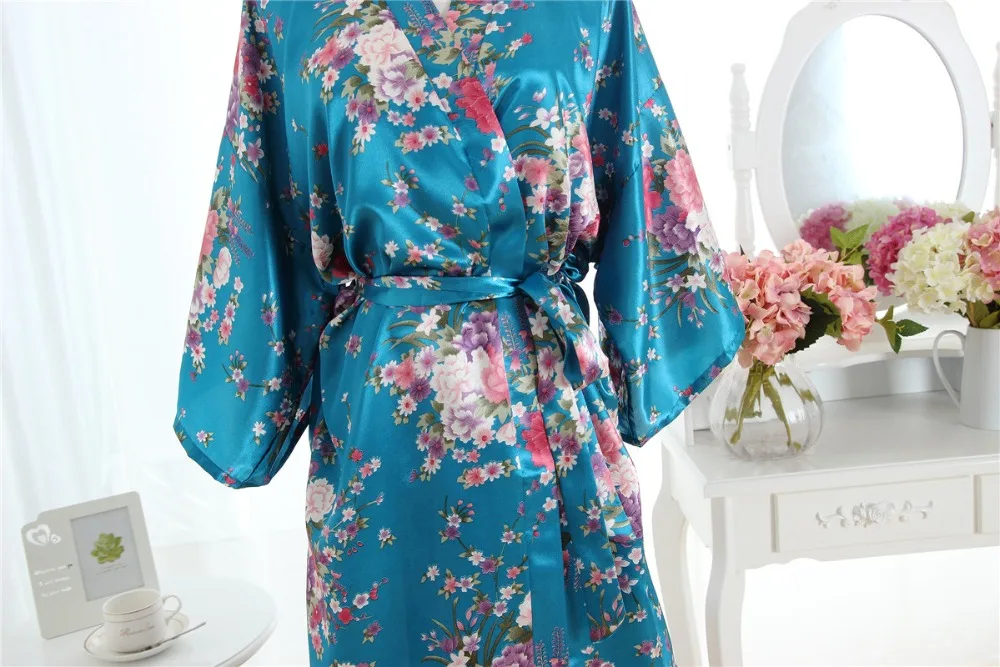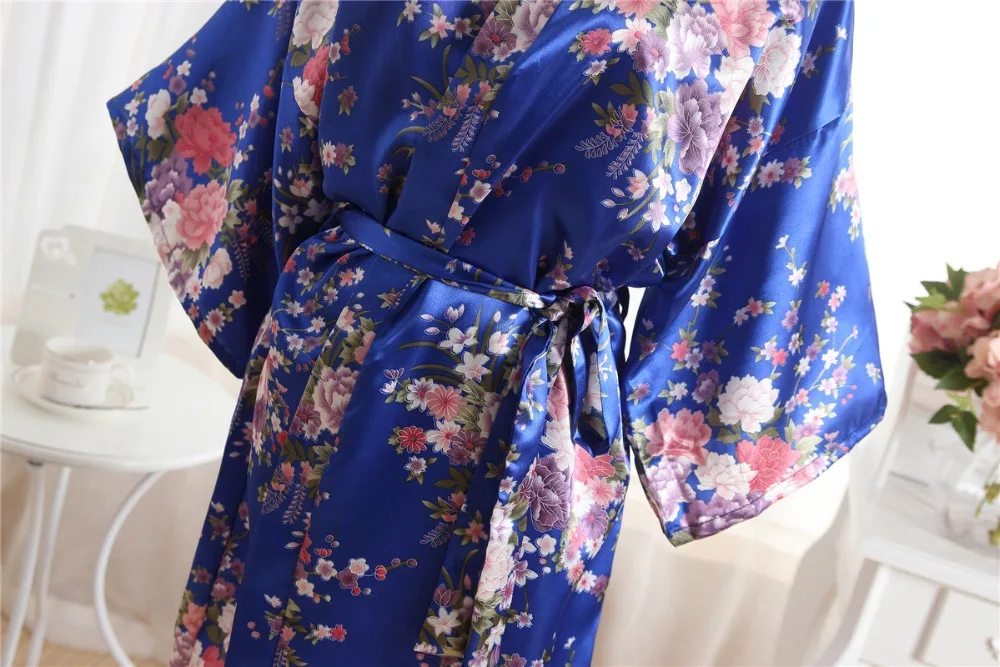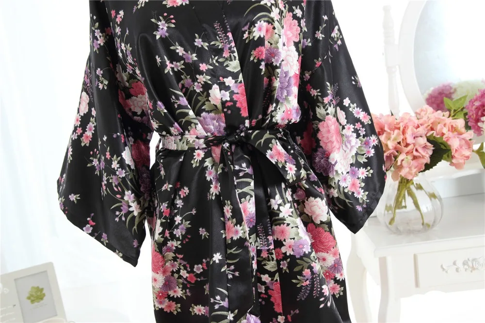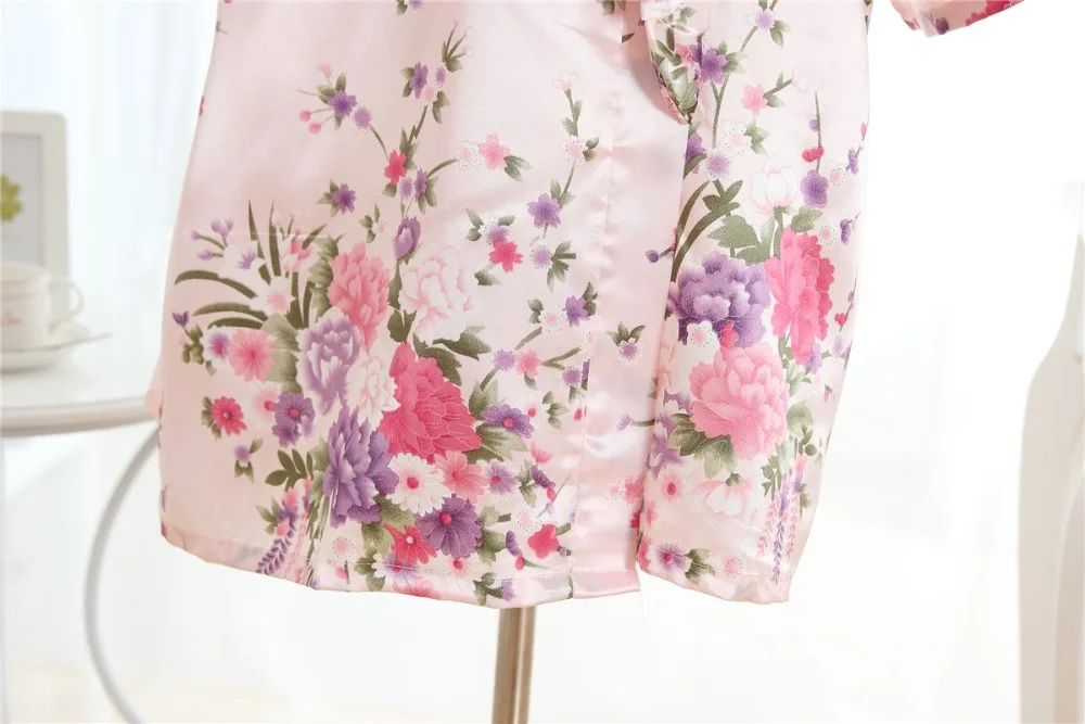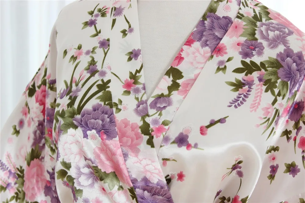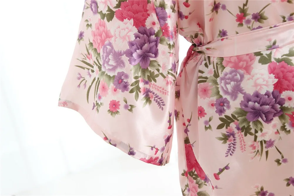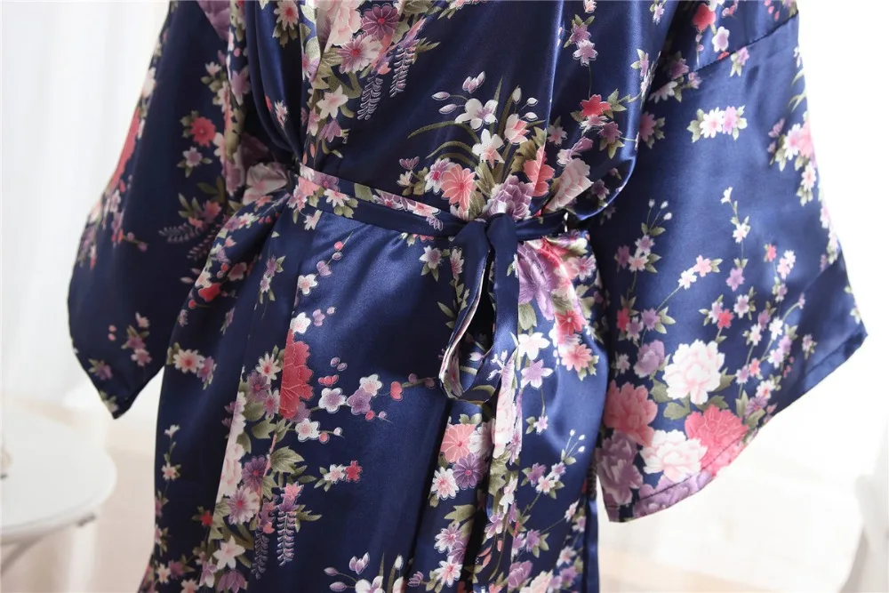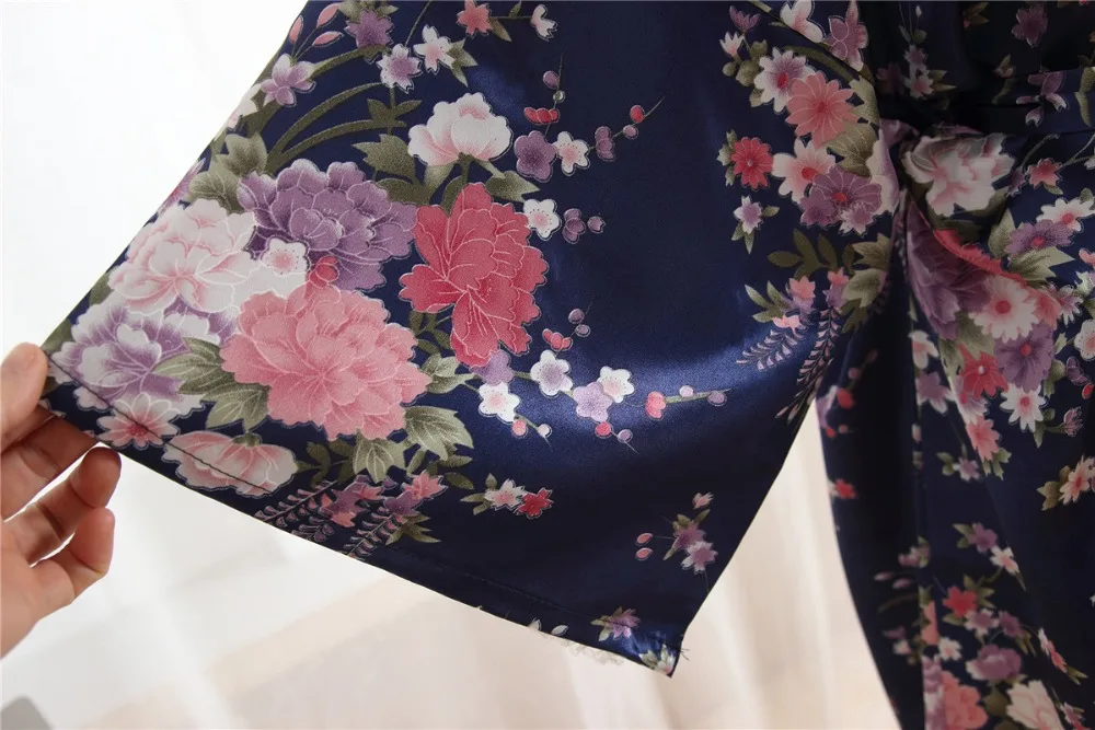 Узор с Сакурой и короткий халат с поясом; без боковых карманов.