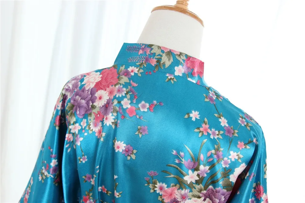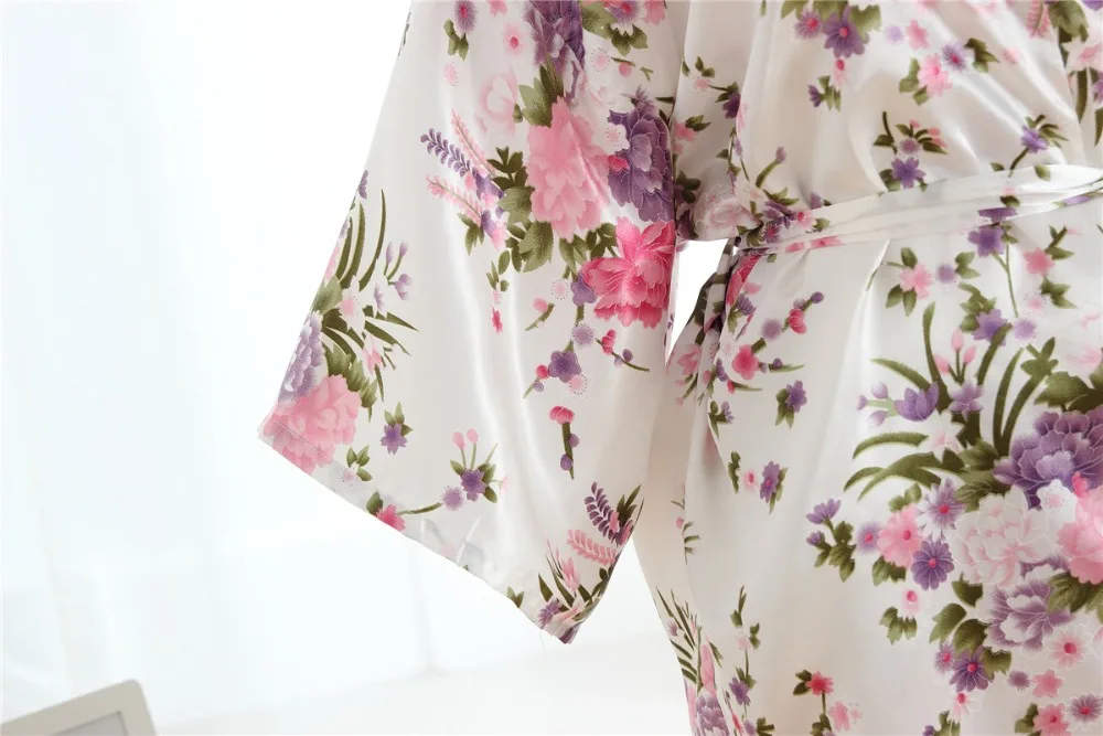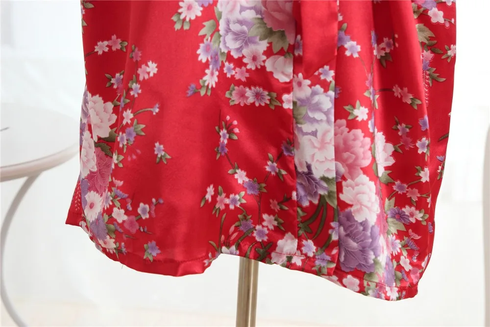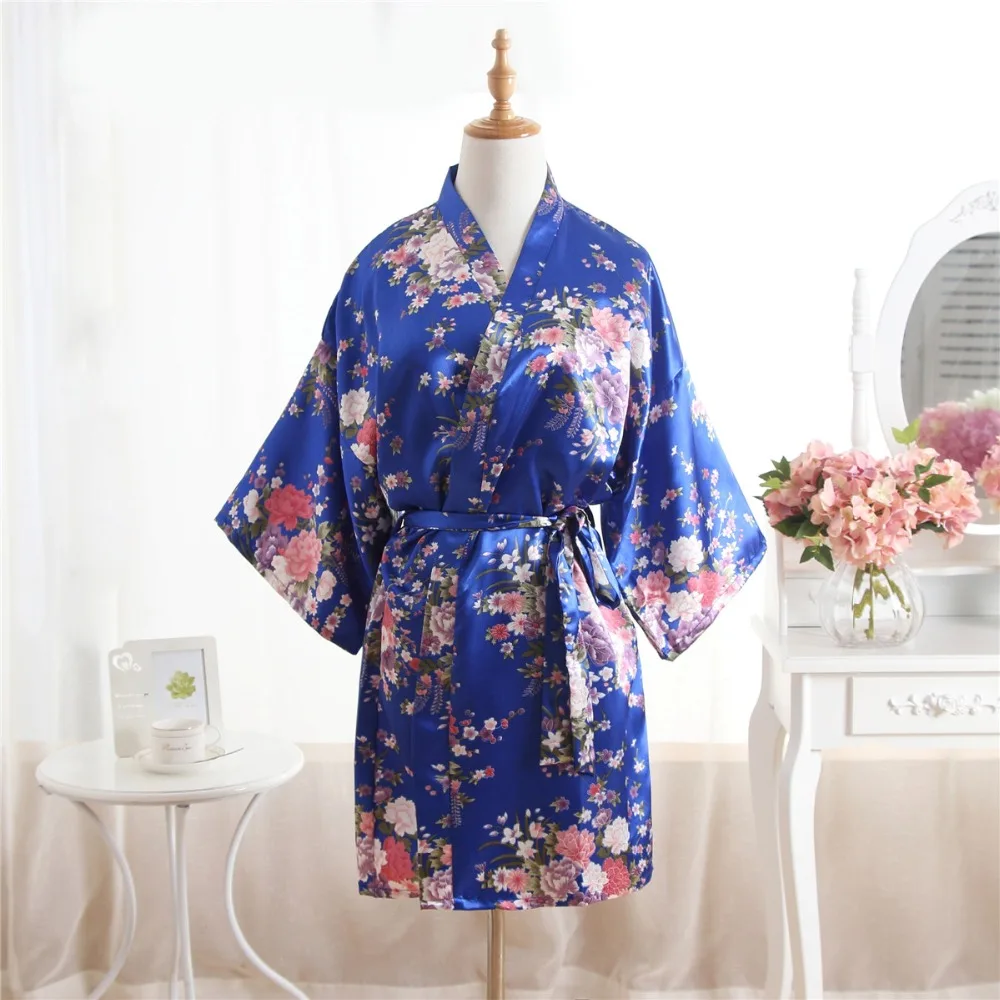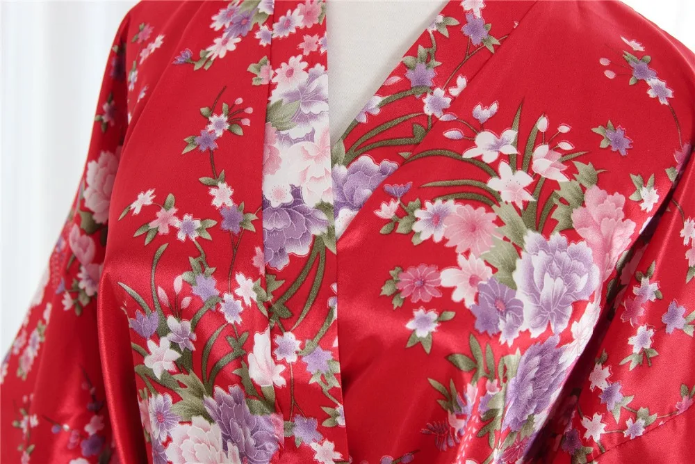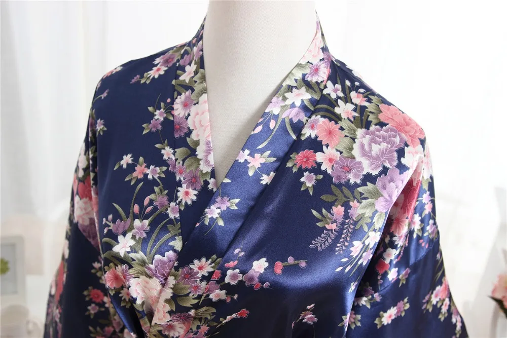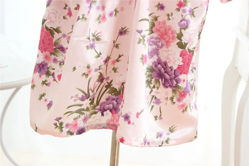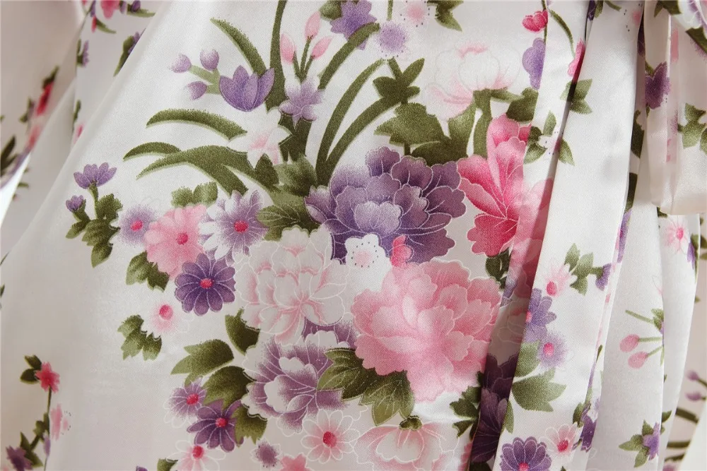 Узор с Сакурой и короткий халат с поясом; без боковых карманов.