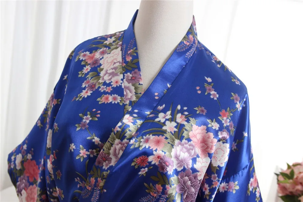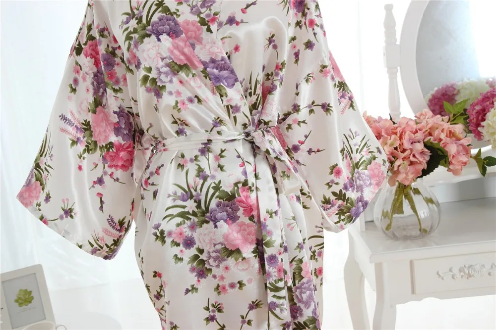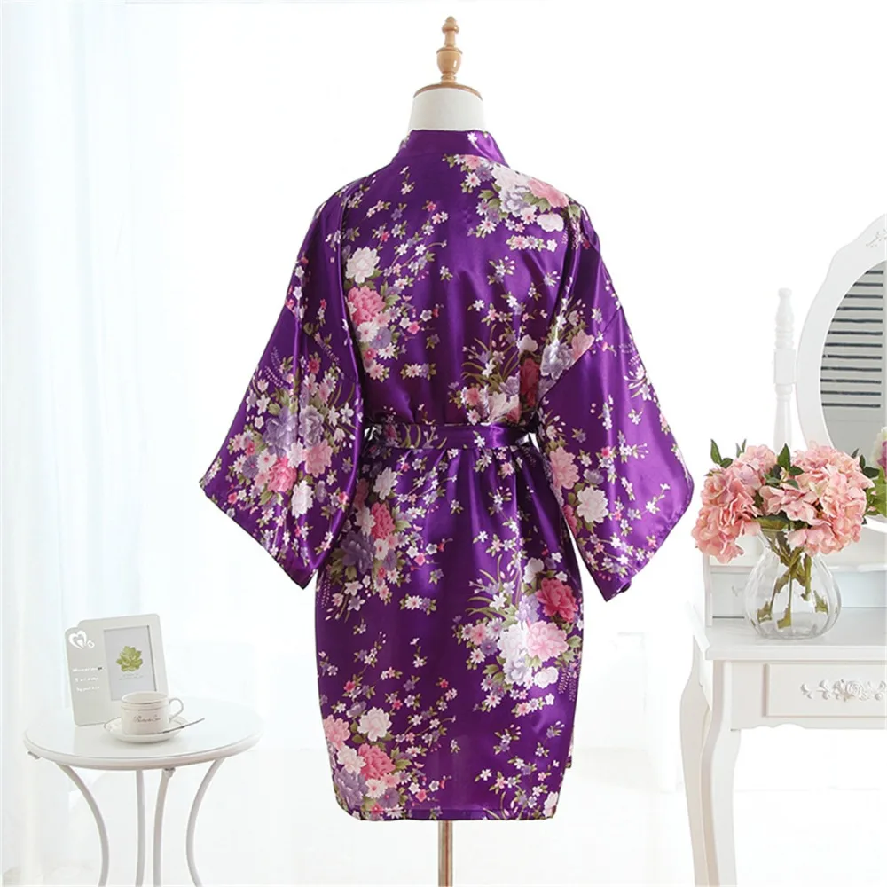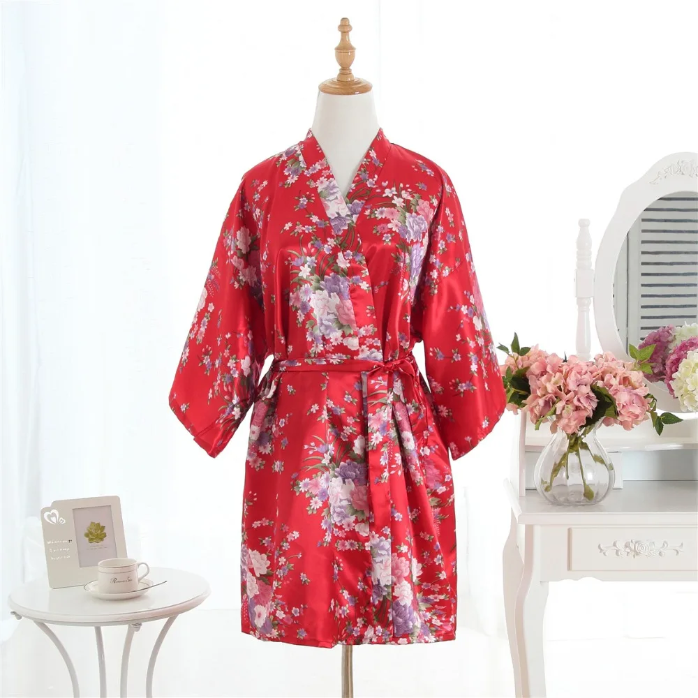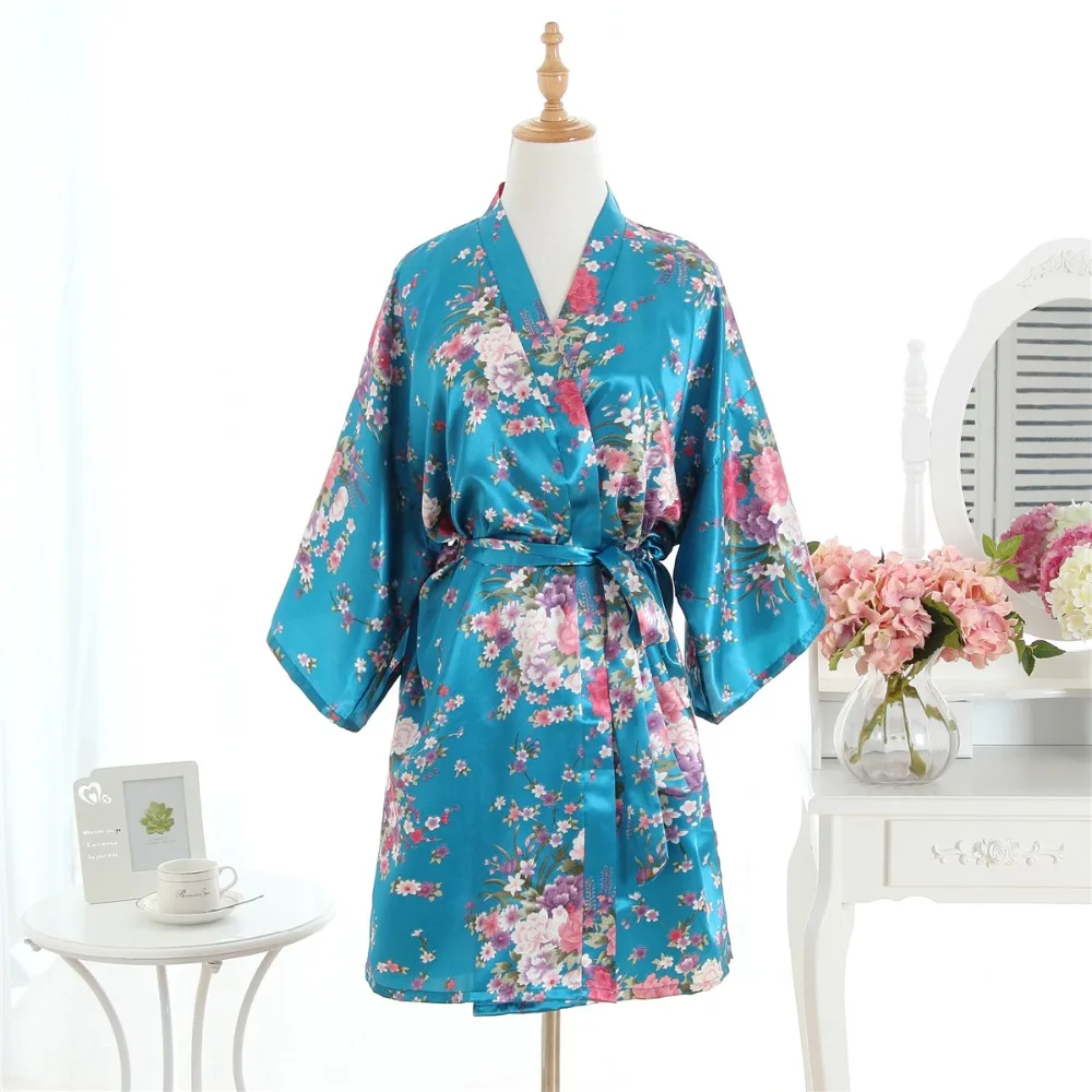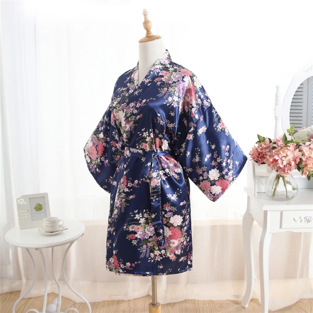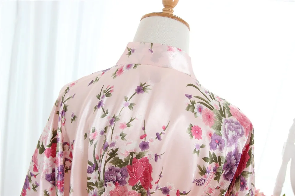 Узор с Сакурой и короткий халат с поясом; без боковых карманов.
