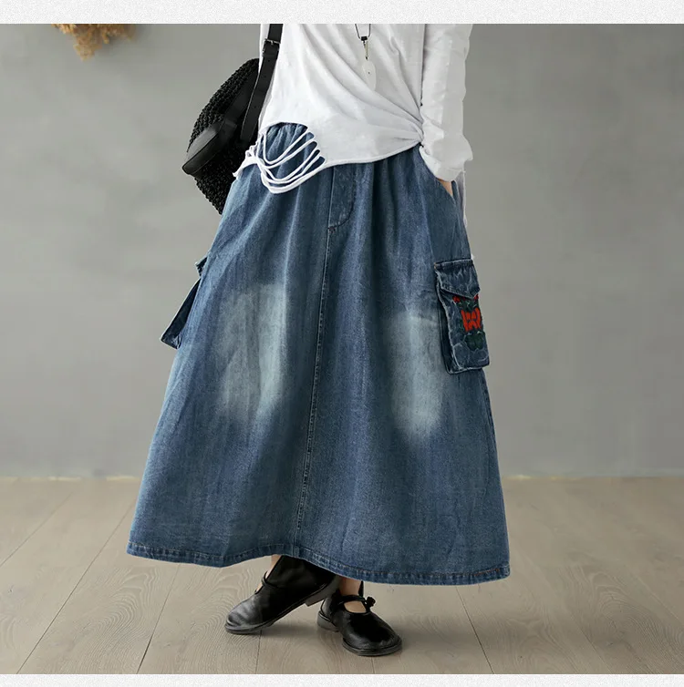 Один размер: длина 83 см, талия (эластичная) 64-98 см, бедра 132 см, подол 180 см.