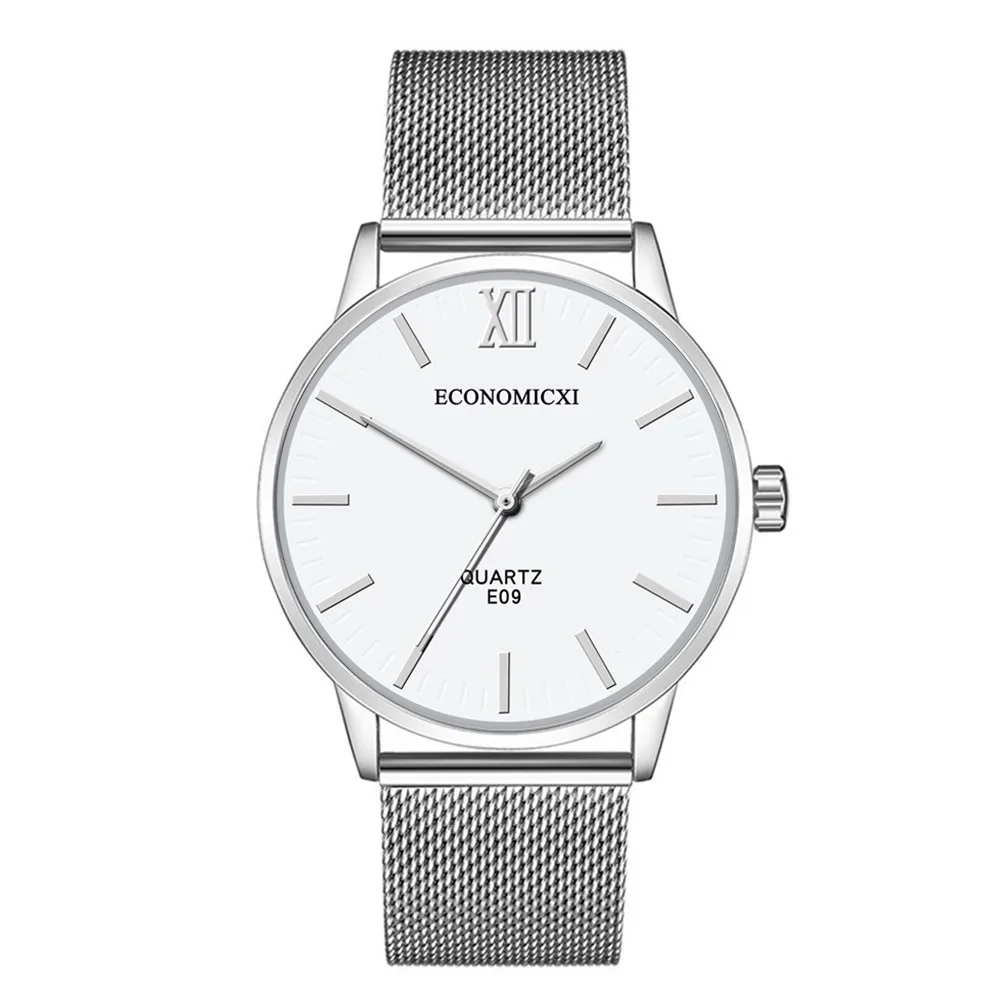 Мужские модные деловые часы из нержавеющей стали с сетчатым ремешком, мужские кварцевые часы