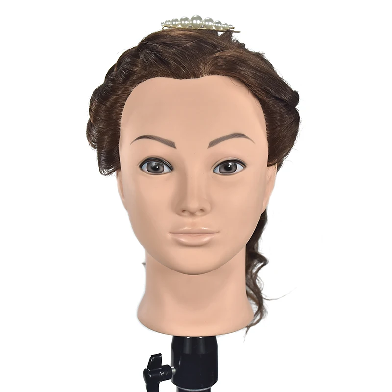 Парикмахерская голова манекена с 60% человеческих волос для прически парикмахерские плойки Тренировка Тренировки головы с подставкой