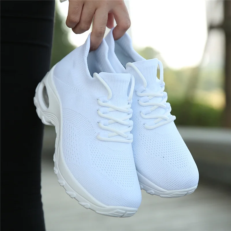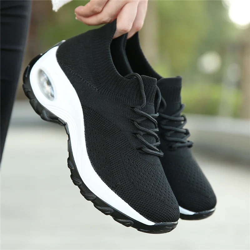 Женские кроссовки с воздушной подушкой, Дышащие трикотажные носки, обувь для бега, женская обувь, увеличивающая рост, на платформе, дышащая сетчатая спортивная обувь для прогулок