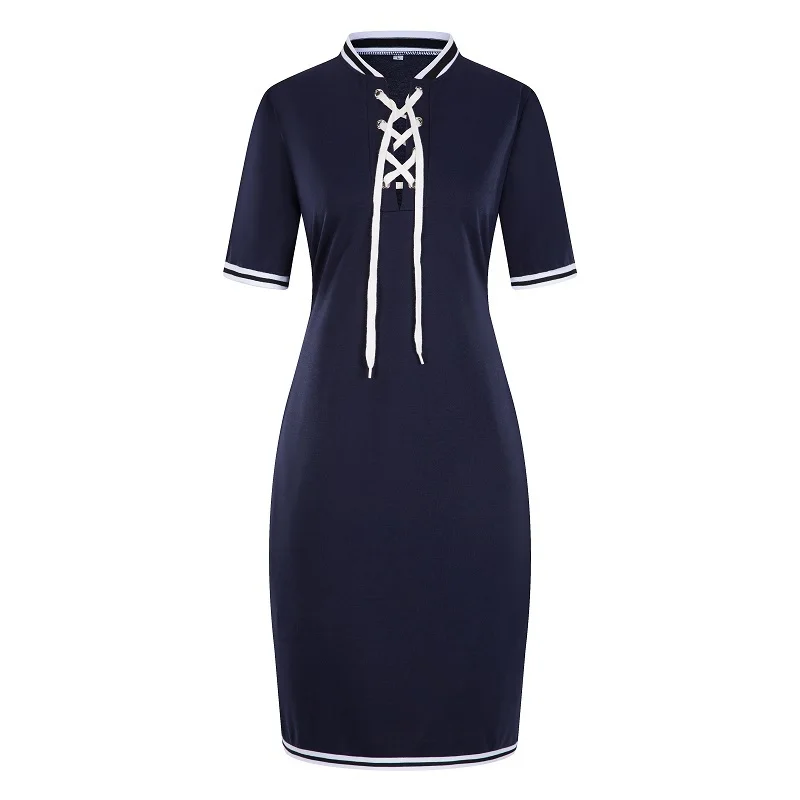 Женское платье с коротким рукавом, летнее платье поло из хлопка