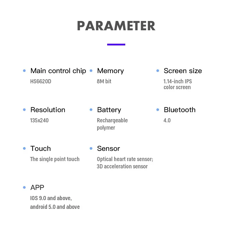 Особенности: 1. ips Цвет Экран: он принимает 1,14-дюймовый ультра-высокой четкости full-view ips Цвет Экран, который является разработан и изготовлен с принтом из мультфильма «головоломка», И полноэкранный дисплей ультра-высокой четкости. 2. Пульсометр кровяное давление кислород: однокнопочное обнаружение, с помощью оптического датчика сердечного ритма, с помощью точной технологии измерения оптического диапазона, точный расчет точных данных о пульсе и кровяном давлении. 3. Умное напоминание: Держите браслет подключенным к приложении, вызов и сообщение, браслет вибрирует, чтобы напоминать вам, не пропустите ни одну важную информацию. 4. Различные спортивные режимы: оснащены датчиками движения, точной записью спортивной информации, эффективным научным наведением упражнений, для максимального эффекта упражнений, поддержка нормального режима и многоспортивного режима. 5. Долгий срок службы батареи: система прошивки и система приложений были обновлены всесторонним образом. Приложение можно скачать, сканируя код на браслете. Работа системы плавная, а срок службы батареи-до 20 дней. Спецификация (прибл.): Модель: 118 плюс Совместимая Платформа: Android/iOS Bluetooth: 4,0 и выше Размер экрана: 1,14 дюйма Разрешение: 135*240 Сенсор: оптический датчик частоты сердечных сокращений; 3d-датчик ускорения Внешний размер: 42*23*13 мм/1,65*0,91*0,51 дюйма Материал: АБС + Поликарбонат Емкость аккумулятора: 120 мА · ч Вес изделия: 44 г Память корпуса: 64 + 512кб Способ ношения: ремешок на запястье Режим работы: сенсорный Интерфейс: USB 2,0 Беспроводное расстояние: 5m-10m/16,4-32,81ft Материал браслета: термопластичный эластомер Дополнительные функции: мониторинг здоровья, push-up, отслеживание движения, умное напоминание, анализ сна, подсчет шагов, дистанционный Автоспуск Водонепроницаемый Рейтинг: IP67 Приложение: iOS 9,0 и выше Android 5,0 и выше