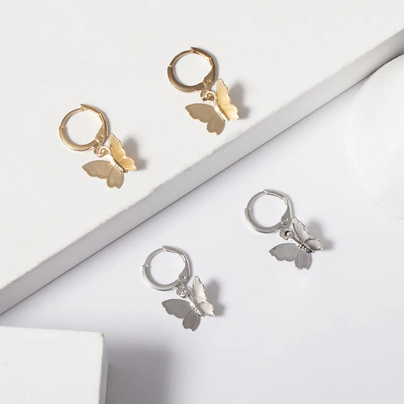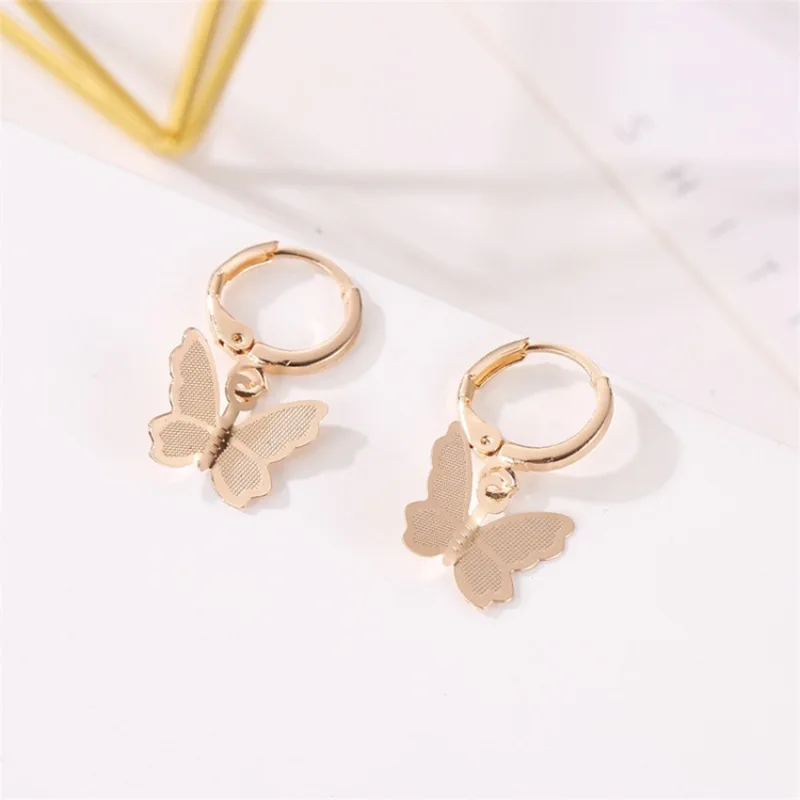 Модные серьги-кольца с бабочками для женщин, золотистые, серебристые, цветные, висячие серьги, Винтажные серьги с насекомыми, серьги-бабочки, ювелирные изделия